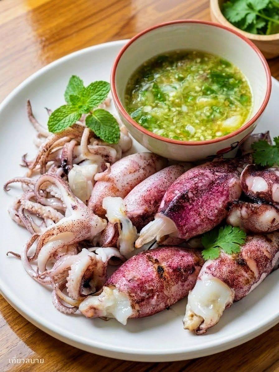 หมึกย่างน้ำจิ้มซีฟู้ด