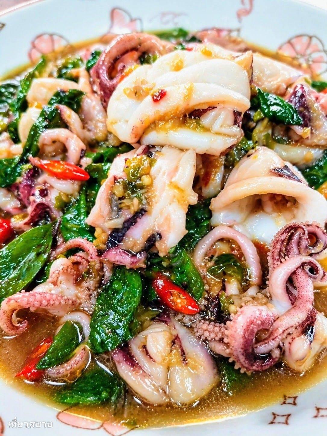 กะเพราหมึก หมึกทอดกระเทียม และหมึกย่างน้ำจิ้มซีฟู้ด