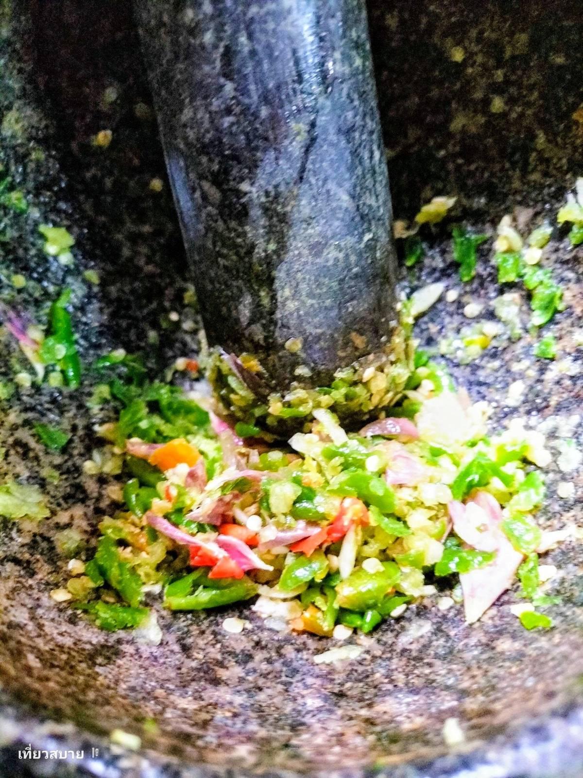 3. พริกขี้หนูสวน +กระเทียม ตำพอหยาบๆ