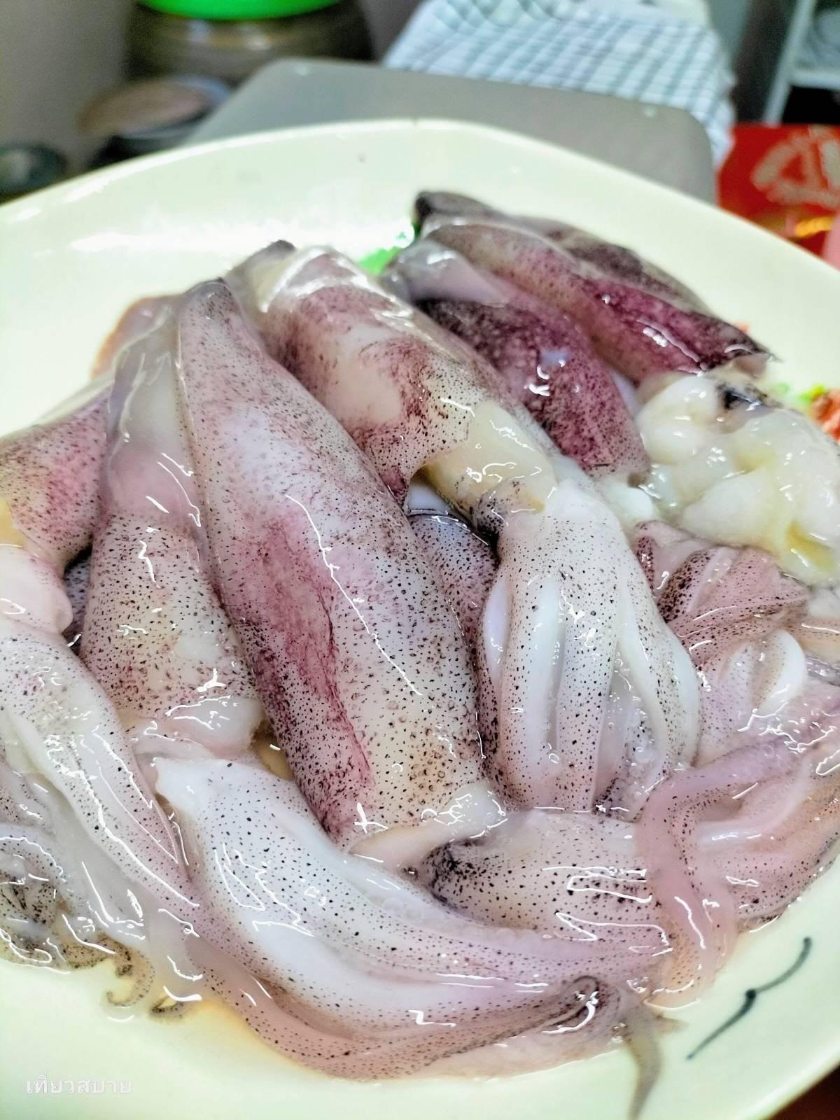 จขกท. ไปเดินเที่ยวตลาดมา แล้วปลาหมึกสดๆ ตานี่ใสแจ๋ว ผิวตึงเปรี๊ยะมาวางขาย กิโลละ