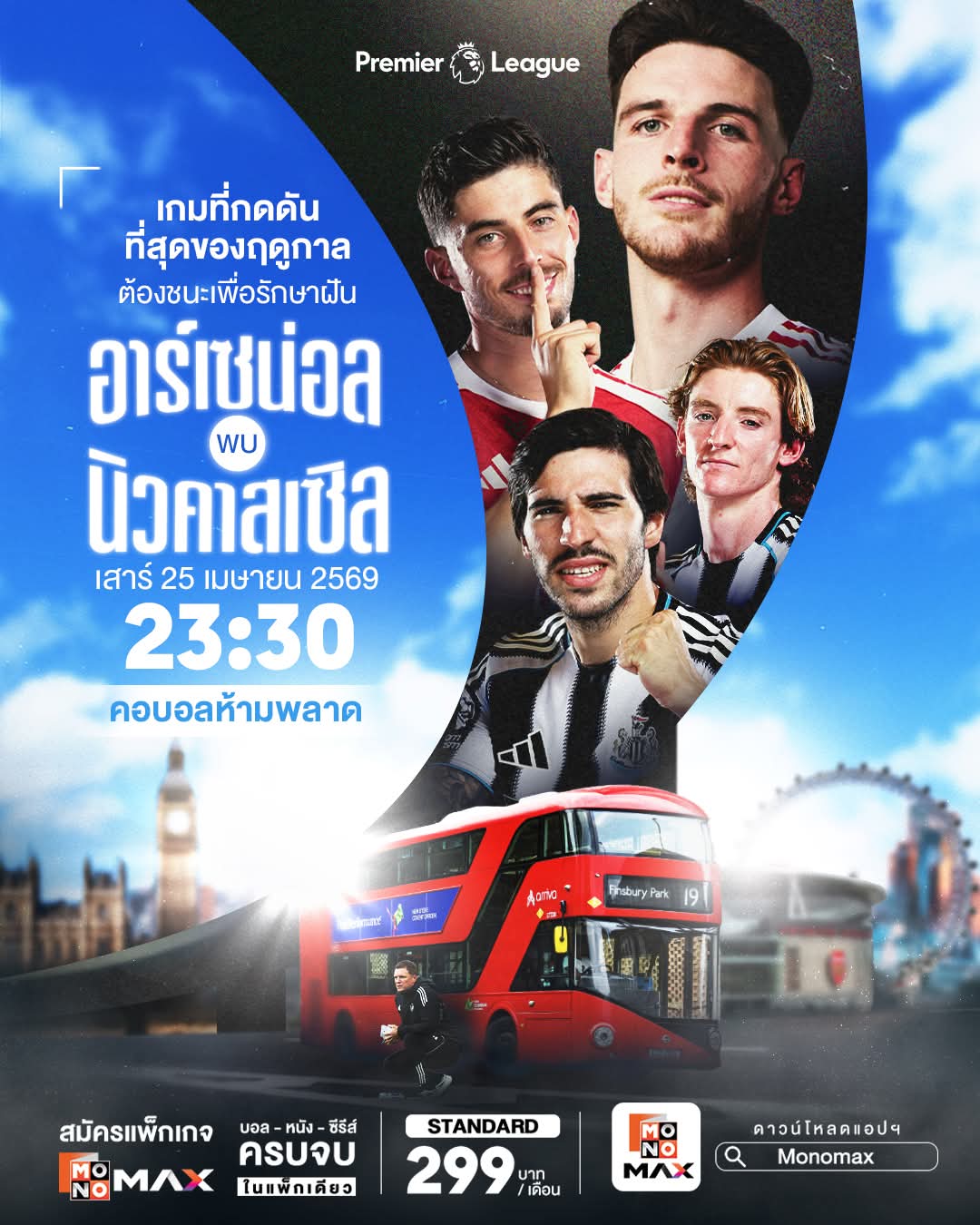 โปรแกรมพรีเมียร์ลีก อาร์เซน่อล พบ นิวคาสเซิ่ล ถ่ายทอดสด : Monomax