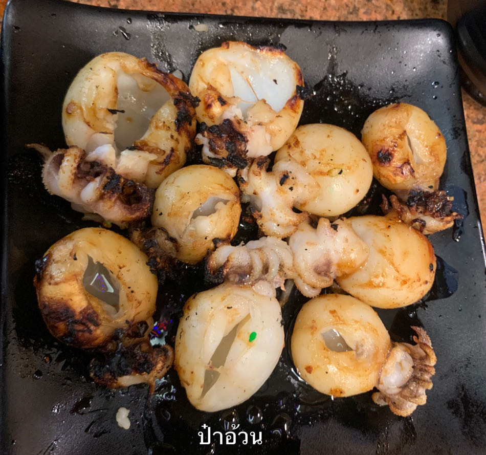 เกรียมๆหน่อย หมึกหด จะอร่อย ให้กินกับยำสาหร่าย