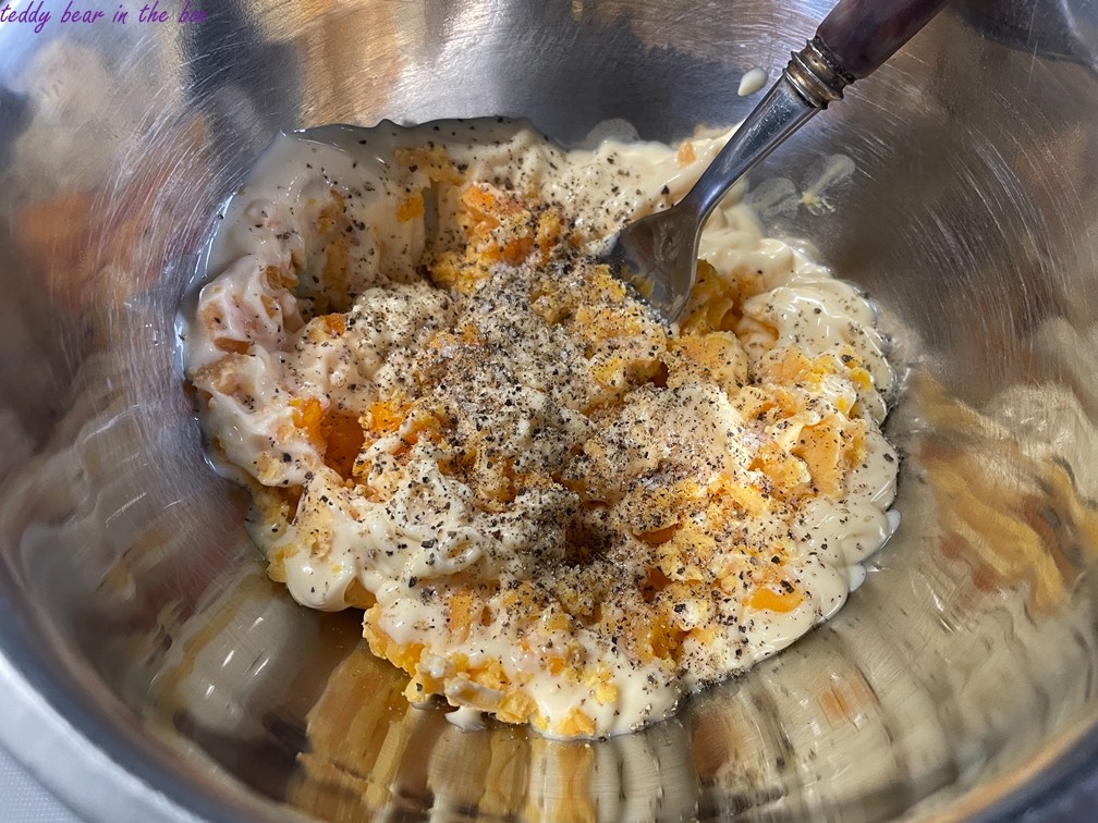 แยกไข่แดง มาผสมมายองเนส พริกไทยดำ เกลือ