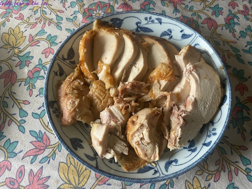 หั่นชิ้นหนา เอาน้ำไก่ราดให้ชุ่ม