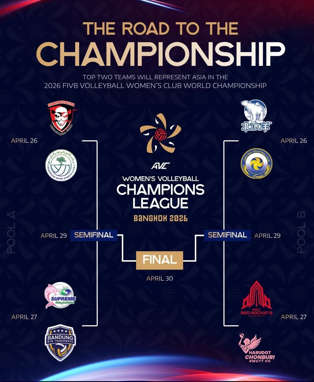 โปรแกรม และ รายงานผล วอลเลย์บอลหญิง ชิงแชมป์สโมสรเอเชีย ประจำวันที่ 26 เมษายน 2569