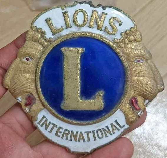 ผมมีตราสำหรับติดที่กระจังหน้ารถอยู่อันนึง เป็นของสโมสร Lions International วัสดุน่าจะเป็นทองเหลือง