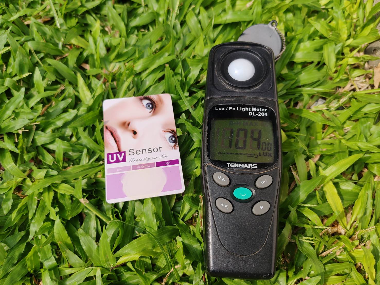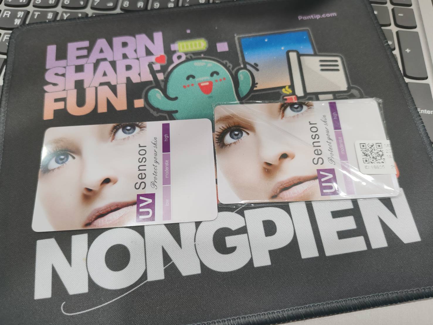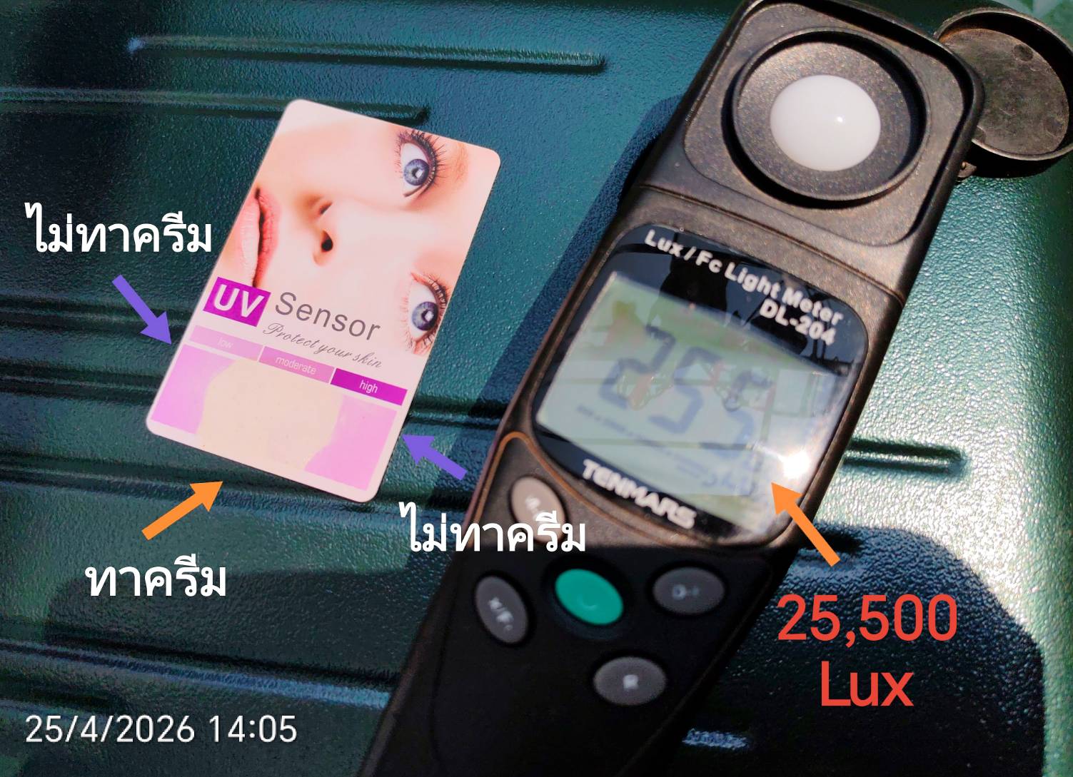ทีนี้ไอ่เรา เด็กสายวิทยื ชอบทดลองก็ อยากรู้มันกัน UV จริงไหม เอาแผ่น UV-Sensor มาวัดละกัน จัดมา แบบนี้ น้องเพี้ยนอยากออกสื่อ 555