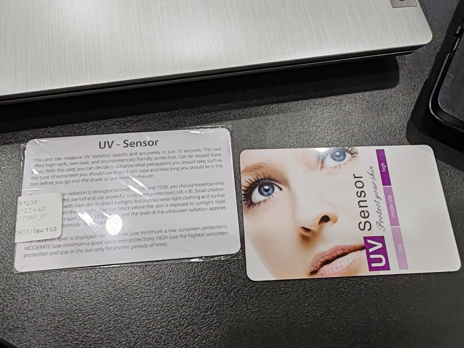คือเวลาออกแดด Card มันจะ เปลี่ยนสี ถ้าแดดแรง UV มาก สีก็จะเข้ม ม่วงเข้มมากขึ้น อย่างอันนี้ จขกท.ถ่ายให้ดู แถบด้านล่างสีไม่ขึ้นจ้ะ แปลว่า UV น้อยมาก (พันทิป สีม่วงนนี่นา อ๋อ มีวิตามิน D เย้ รับๆ วิตามิน D ความลับพึ่งรู้เลยนะเนี่ย 55 อิอิ แอบแซว)