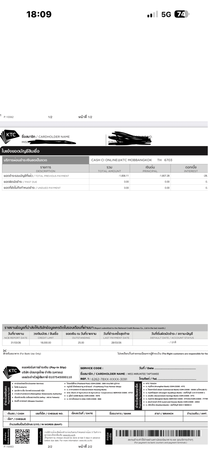 บัตรกดเงินสด KTC ขึ้นแบบนี้