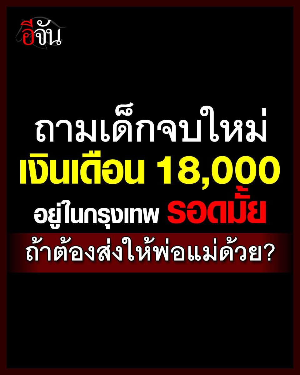 ถามเด็กจบใหม่หน่อยค่ะ เริ่มงานในกรุงเทพ เงินเดือน 18,000 หรือน้อยกว่านั้น อยู่กันได้ไหม? แล้วได้ส่งให้พ่อแม่ด้วยหรือเปล่า?