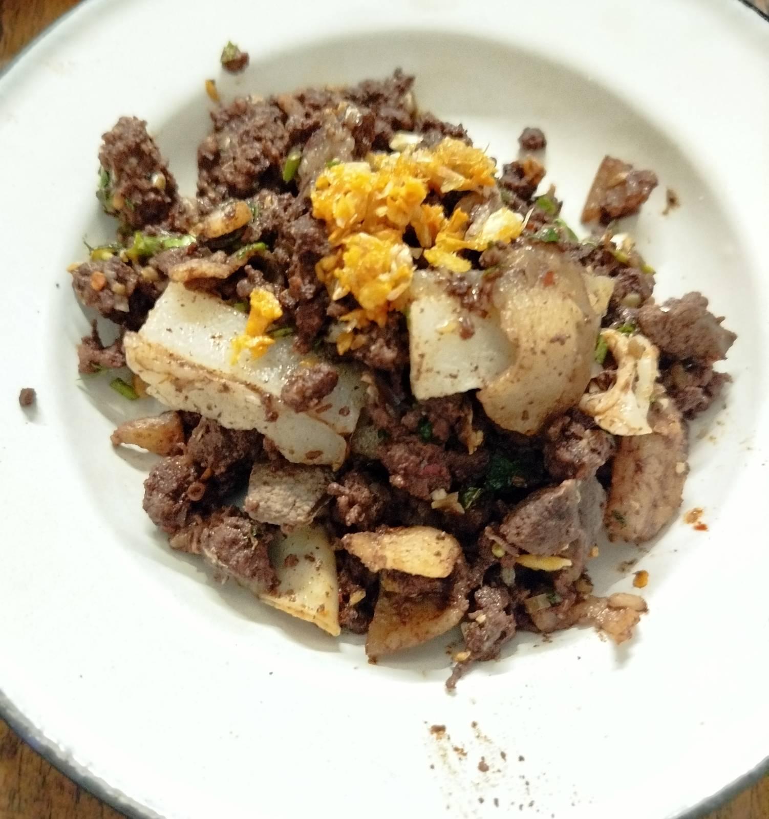 เมนูวันนี้เอาใจเจ๊ผมมาก กระเพาะปลาเนื้อปูเนื้อไก่ เล็ก ๆไม่ หม้อใหญ่ ๆ แม่ผมจัด! ทั้งกินเอง ทั้งแจกเพื่อนบ้าน มีคนชมว่าอร่อยปุ๊บ ทำแจกแหลก กลับบ้านมา กลิ่นหอมฟุ้ง ได้กลิ่นน้ำมันงา ได้กลิ่นรากผั