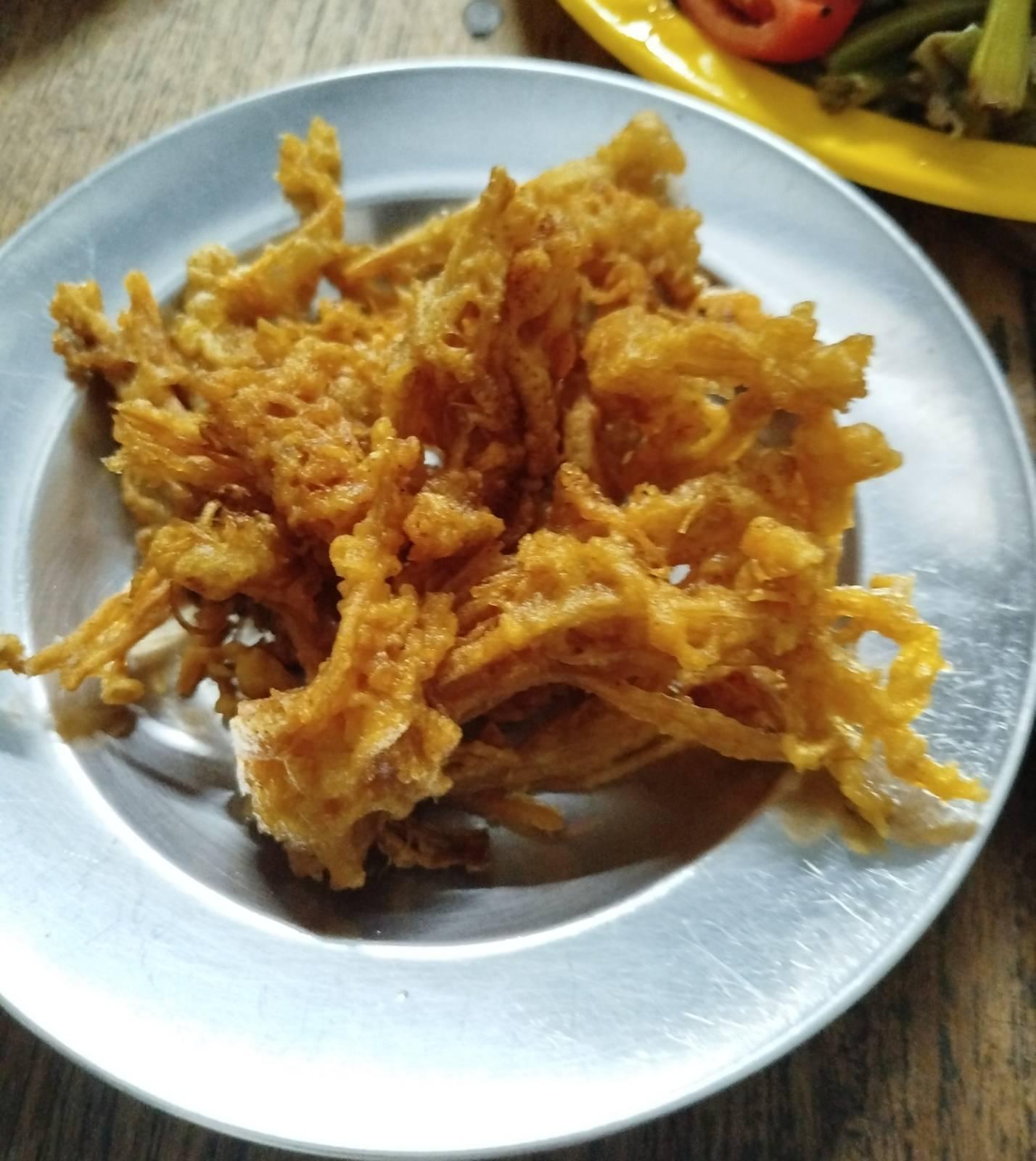 ได้เห็ดเข็มทองทอดมาแอม ข้าวนึ่ง10บาทจะพอไหมนี่