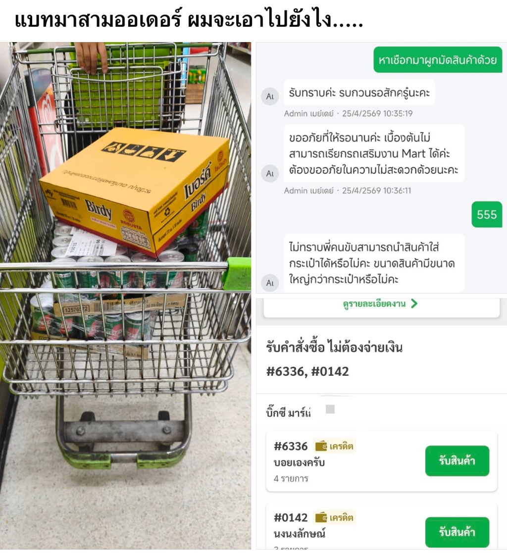 ไรเดอร์ : ไรเดอร์คิดว่า ลูกค้าไม่อยากจ่ายแพง หรือเซฟค่าขนส่ง หรือไม่มีรถในการที่จะไปซื้อของ