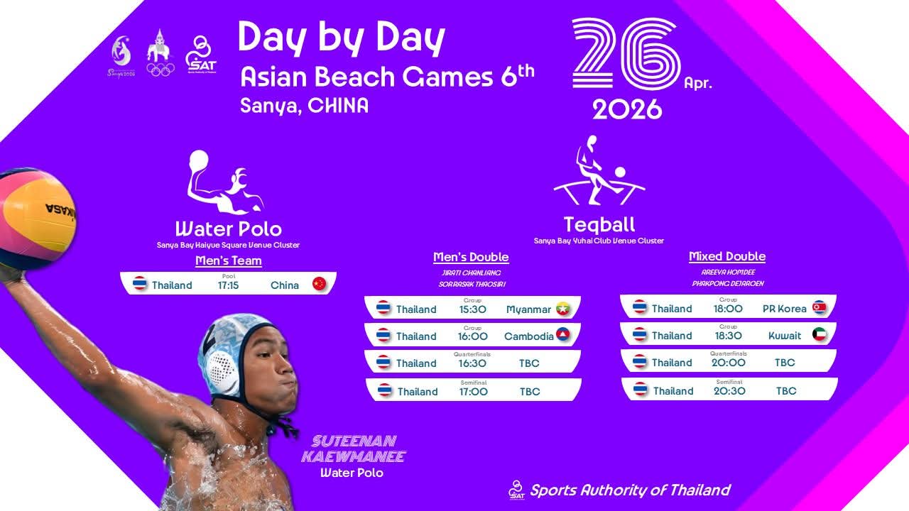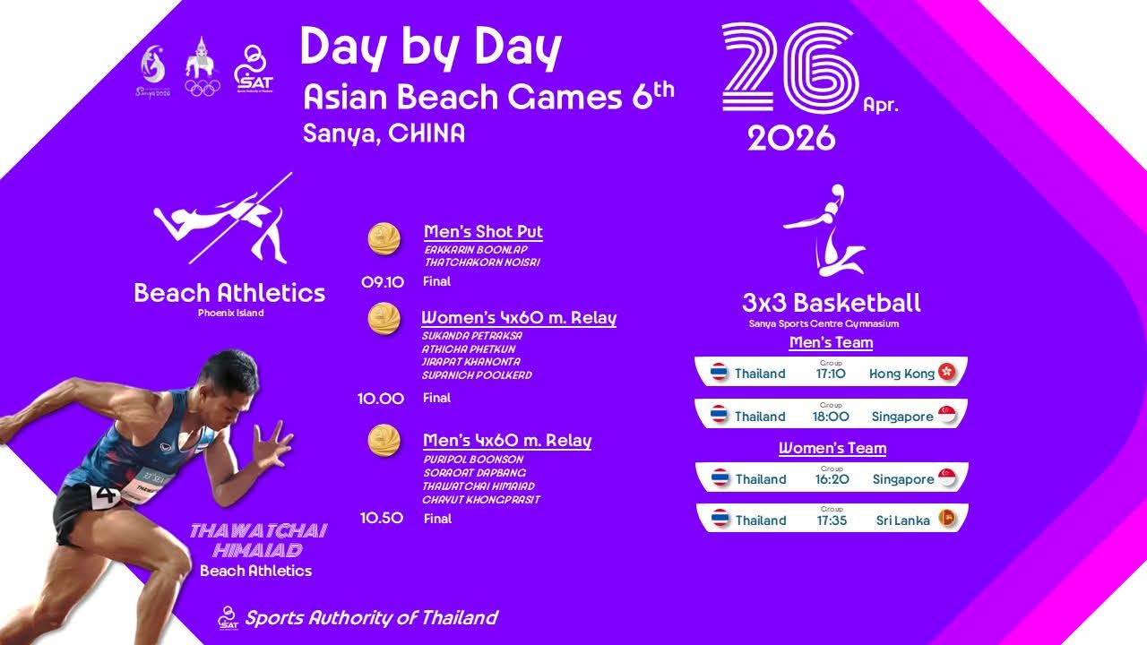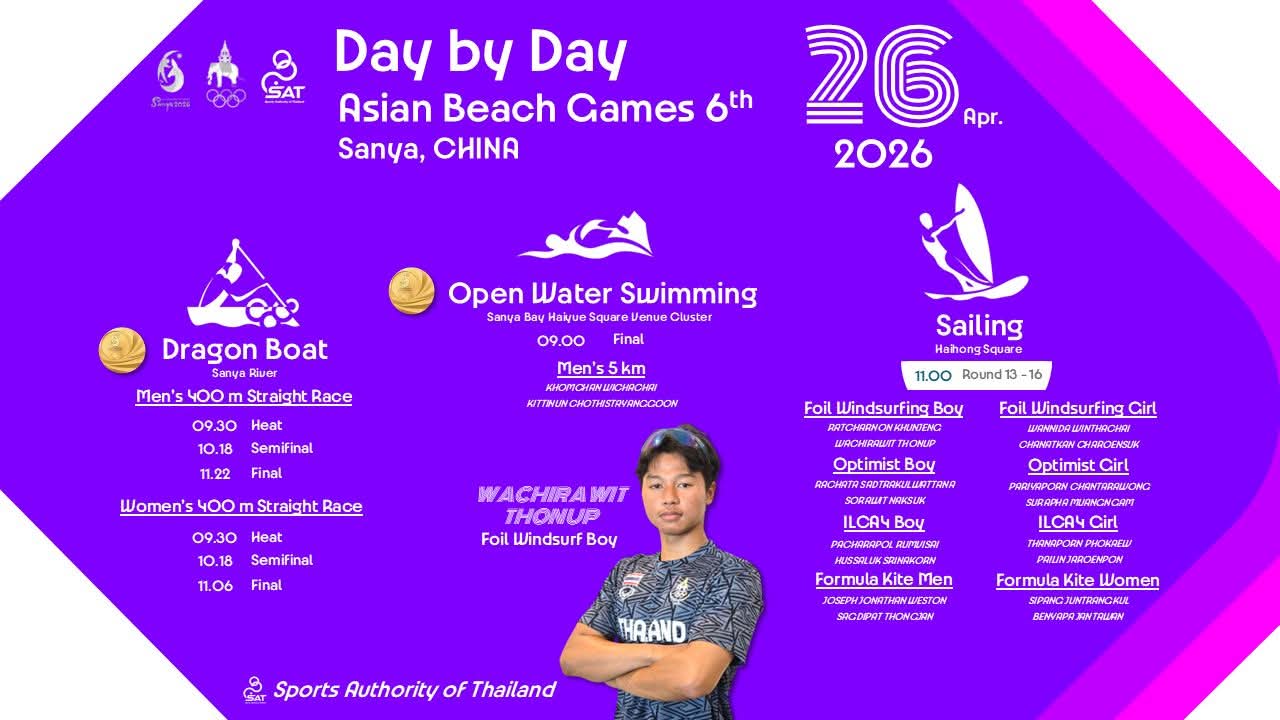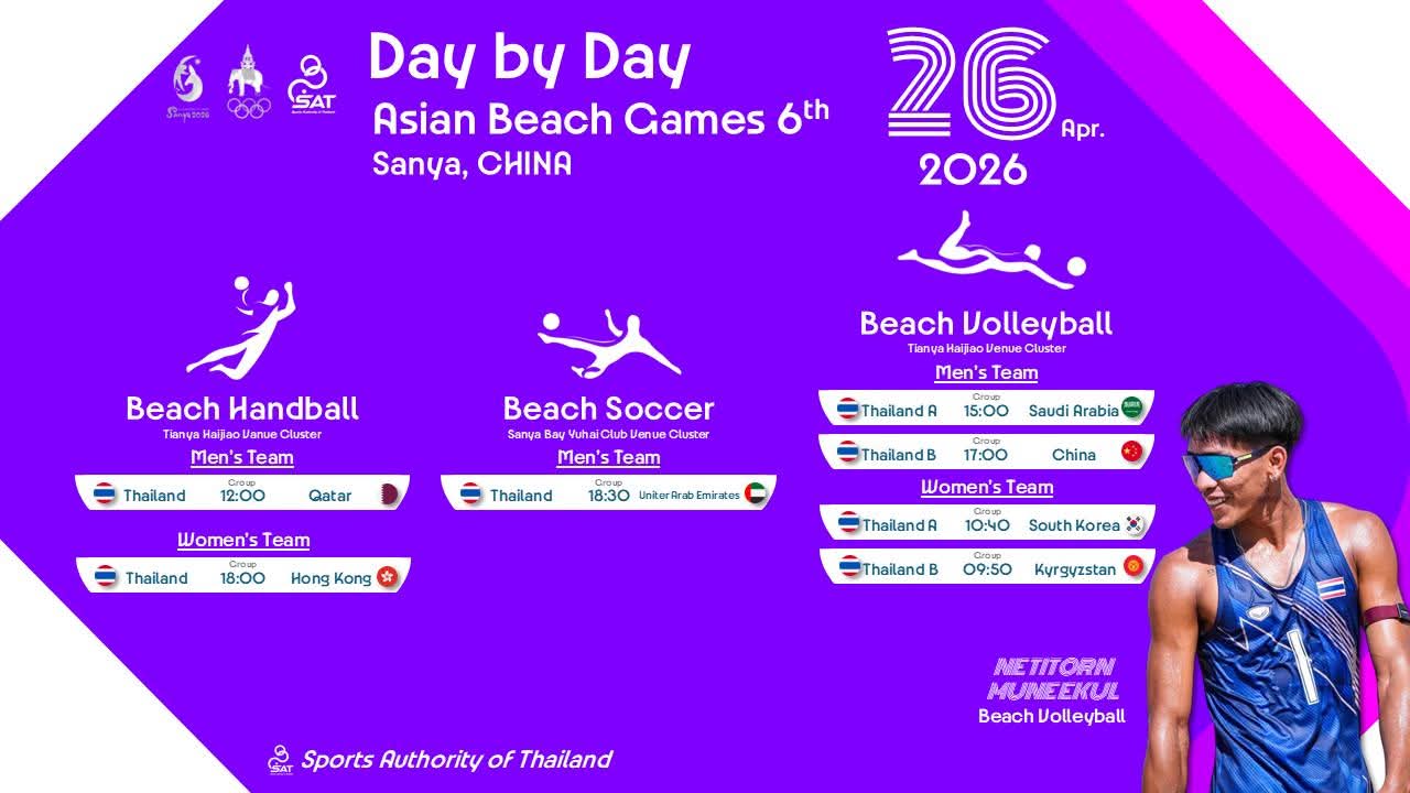 โปรแกรม เอเชียนบีชเกมส์ 26เมษา