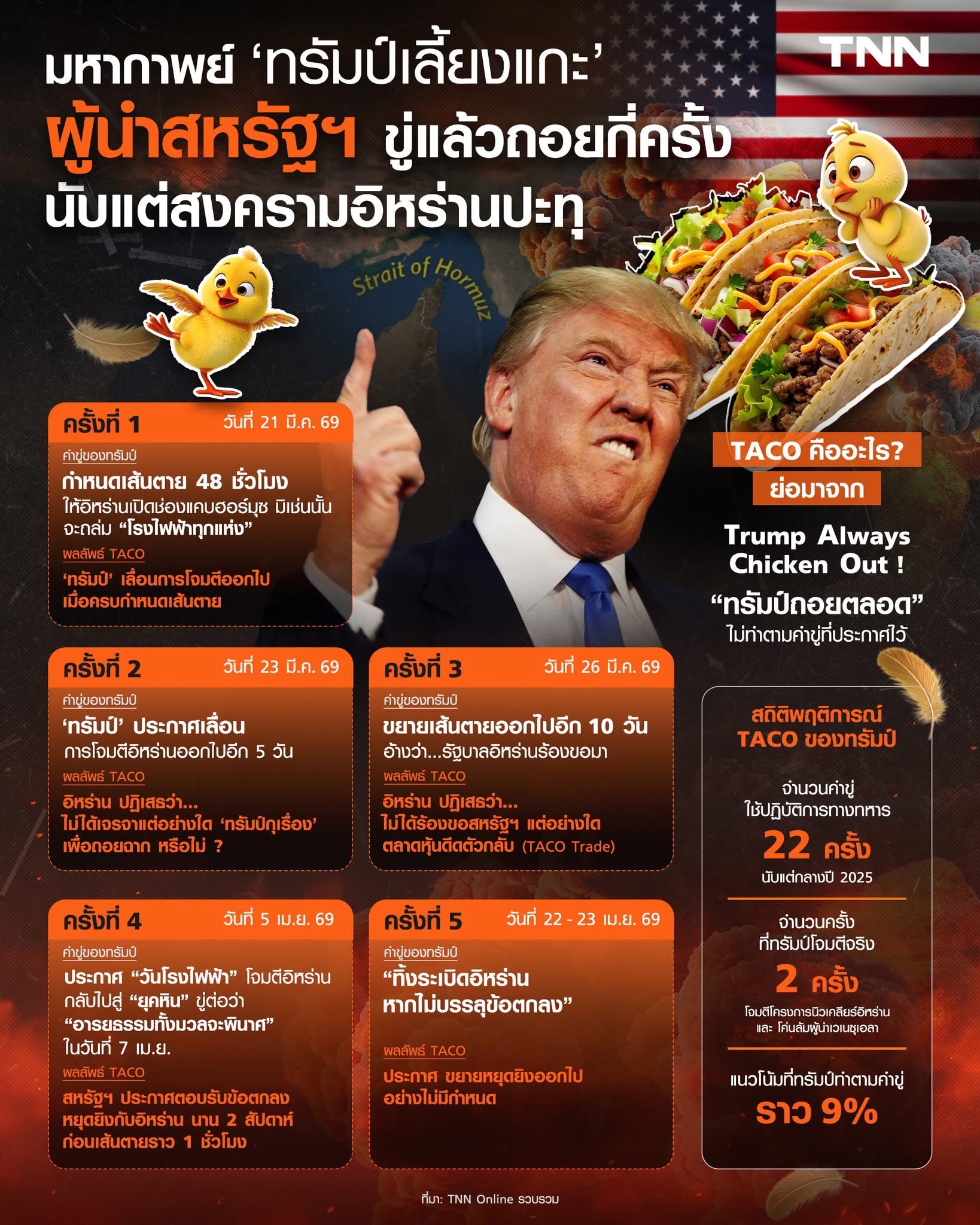 เป็นอีกครั้งที่ ทรัมป์ มีพฤติกรรมแบบ Taco หรือ Trump always chicken out! หรือทรัมป์ถอยตลอด แม้จะขู่แรงแค่ไหน