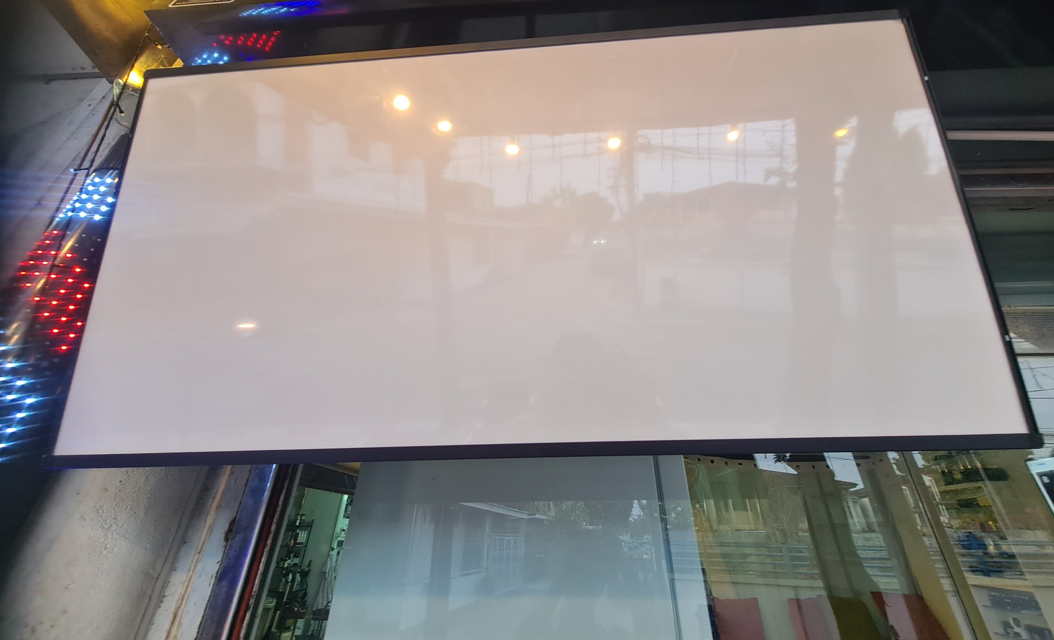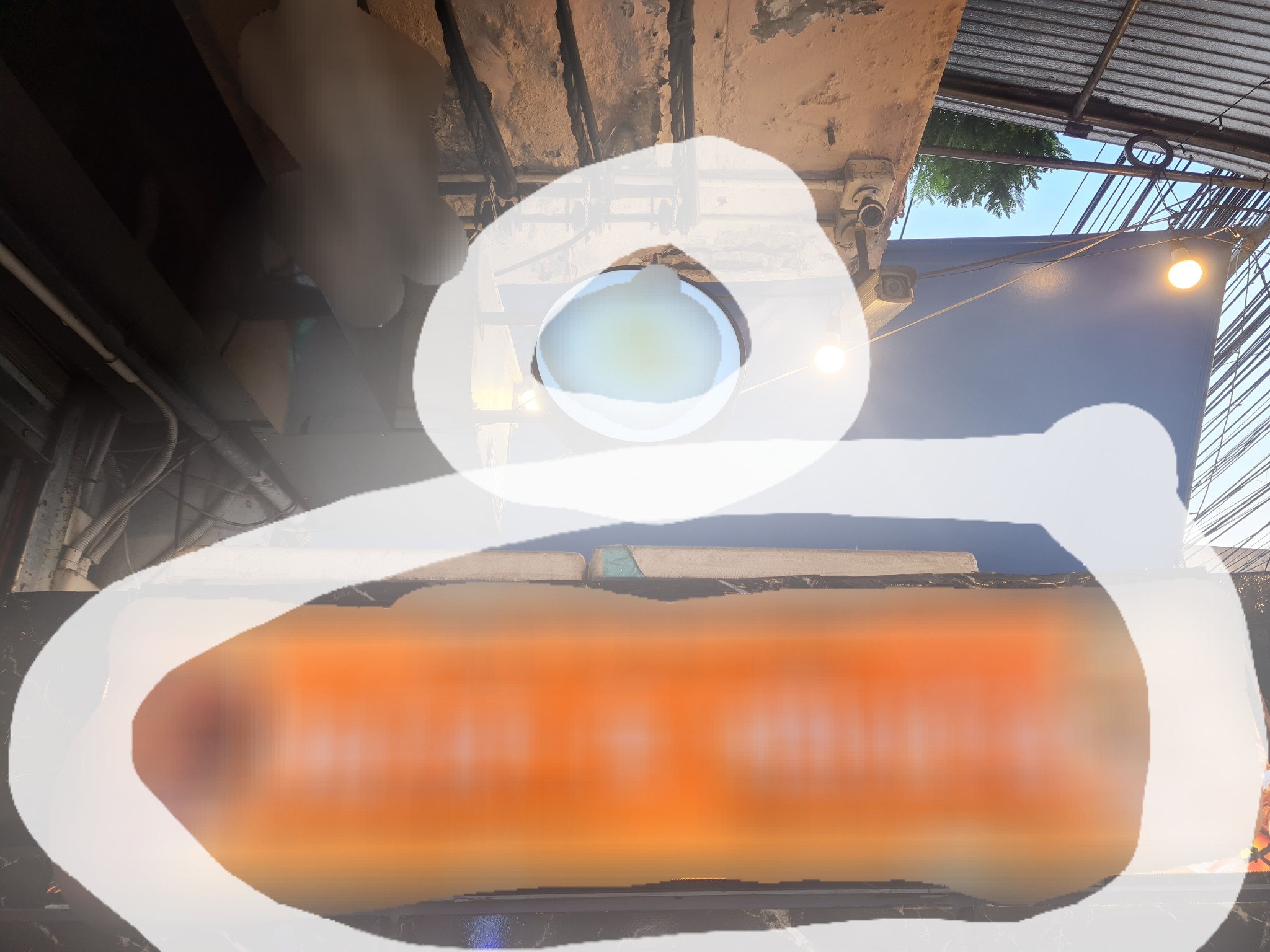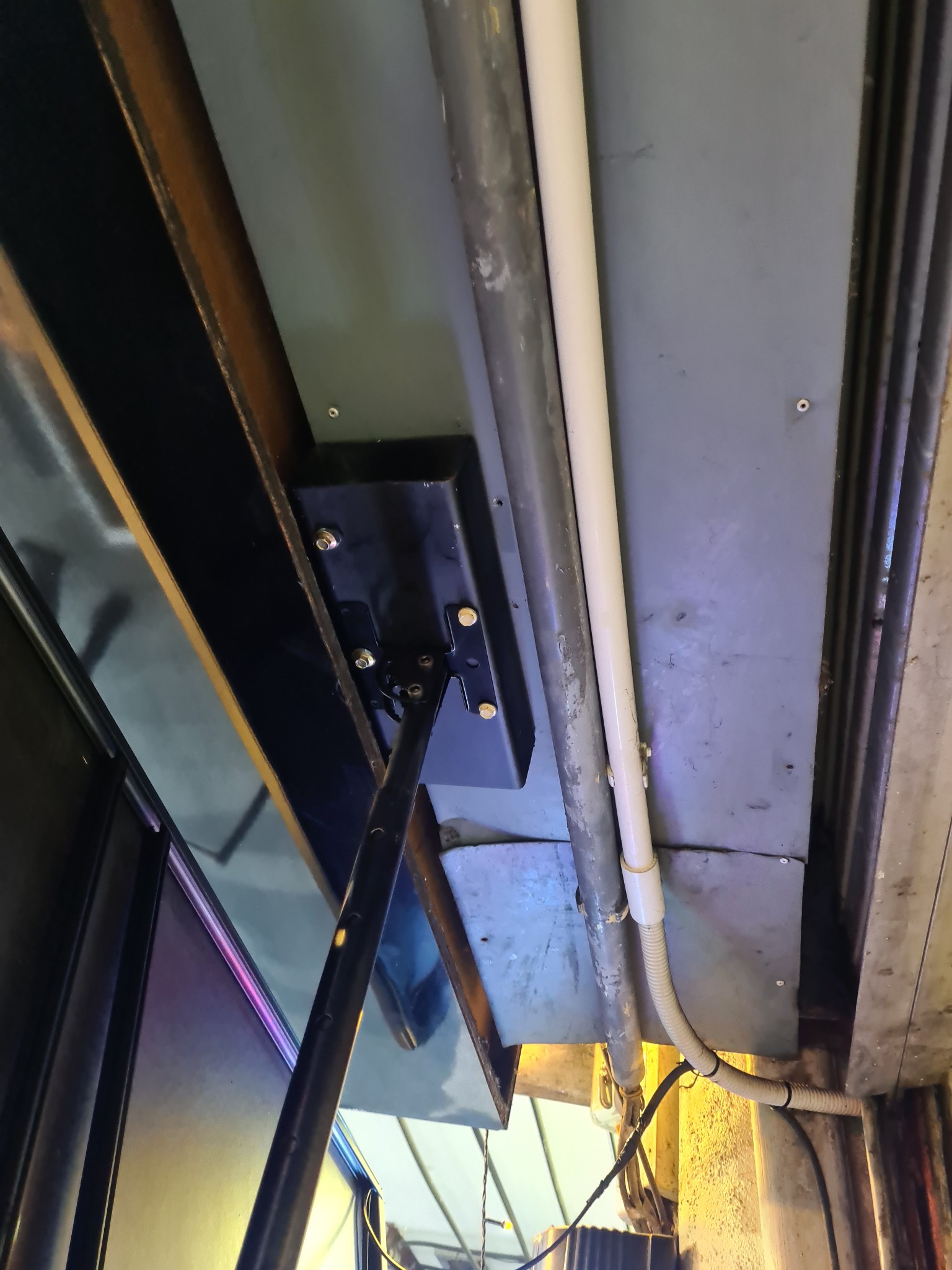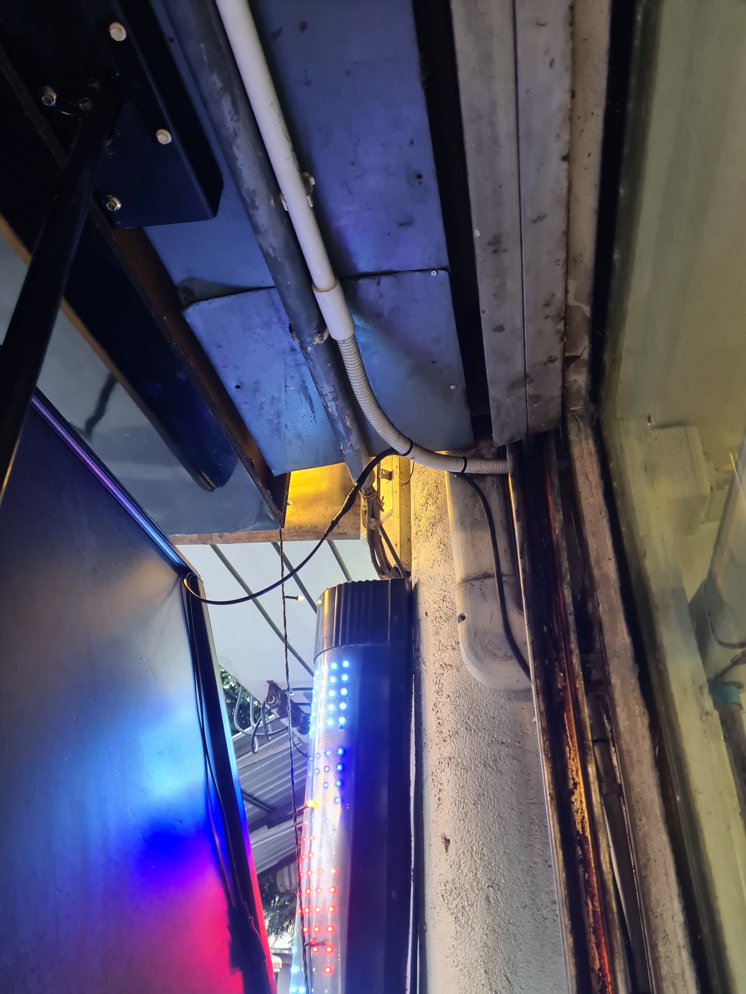 3. ป้ายใหญ่ เสามันยาวไป แล้วไม่แข็งแรงตอนโดนลมมันส่ายนิดหน่อย เลยมีการตัดเสาให้เล็กลงและเอาเหล็กบล็อคมาตัดและยึดติดกับเพดานด้านบนและเจาะยึดขาเสาของป้ายไฟ อีกที่ มีต่อสายไฟด้วยนิดเดี๋ยวไม่ถึงเมตร มีน็อต และ สกรูพร้อม