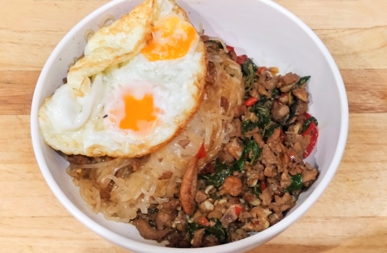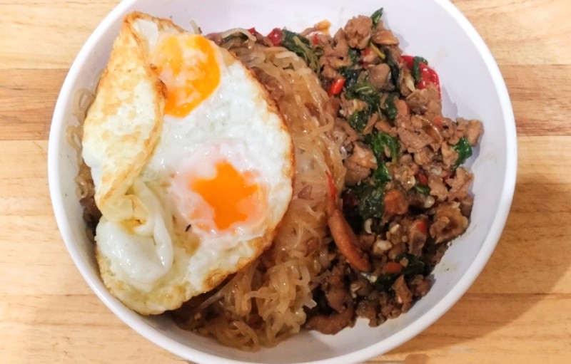 เส้นเล็กผัดกะเพราหมูสับ