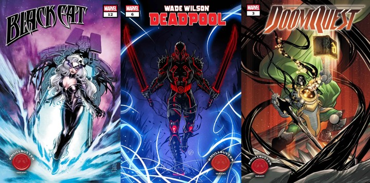 ธีมปก variant เดือนนี้ได้แก่... Knullbusterl!! เป็นภาพเหล่าฮีโร่อัปเกรดตัวเองเพื่อต่อกรกับคุนูล แต่ธีมเล็กจิ๋วแค่ 5 ปก ธีมของทีมนักวาด Stormbreakers ชื่อว่า Hellfire Costume Swap เป็นตัวละครแต่งชุดหรูหราที่ผสมเอกลักษณ์ของตัวละครอื่นมาด้วย อย่างเช่น โทนี่สวมชุดฮอว์คอายแต่ยังมีเตาปฏิกรณ์ที่อก มาร์คสวมชุดดูมแต่สีขาวเหมือนของตัวเอง เป็นต้น และอีกธีมชื่อ Superstar แต่ไม่มีตัวอย่างซักปก คิดว่าอาจเกี่ยวกับฉลามบกเจฟฟ์และคนวาดน่าจะคนเดียวกันหมด