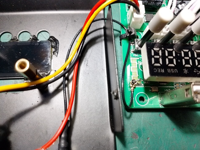การต่อสายของผมนั้นง่ายแสนง่ายไม่ต้องปอกสายไฟที่มีขนาดเล็กให้ยุ่งยาก ในส่วนของชิลด์ผมจับขั้วต่อหงายขึ้นแล้วบัดกรีติดกับขั้วกราวด์ของสายอากาศเลย ส่วนตัวนำผมตัดลายวงจรที่จุด Common แล้วใช้สายไฟขนาดเล็กบัดกรีเชื่อมกันตามภาพแล้วใช้เคเบิ้ลไทร์รัดสายอากาศเอาไว้ไม่ให้หลุดใช้เวลาทำไม่ถึง 5 นาทีก็เสร็จเรียบร้อย ทดสอบใช้งานตอนสงกรานต์รับได้ไกลเกือบ 50 เมตรไกลกว่าตอนใช้สายไฟเป็นเสาอากาศครับ