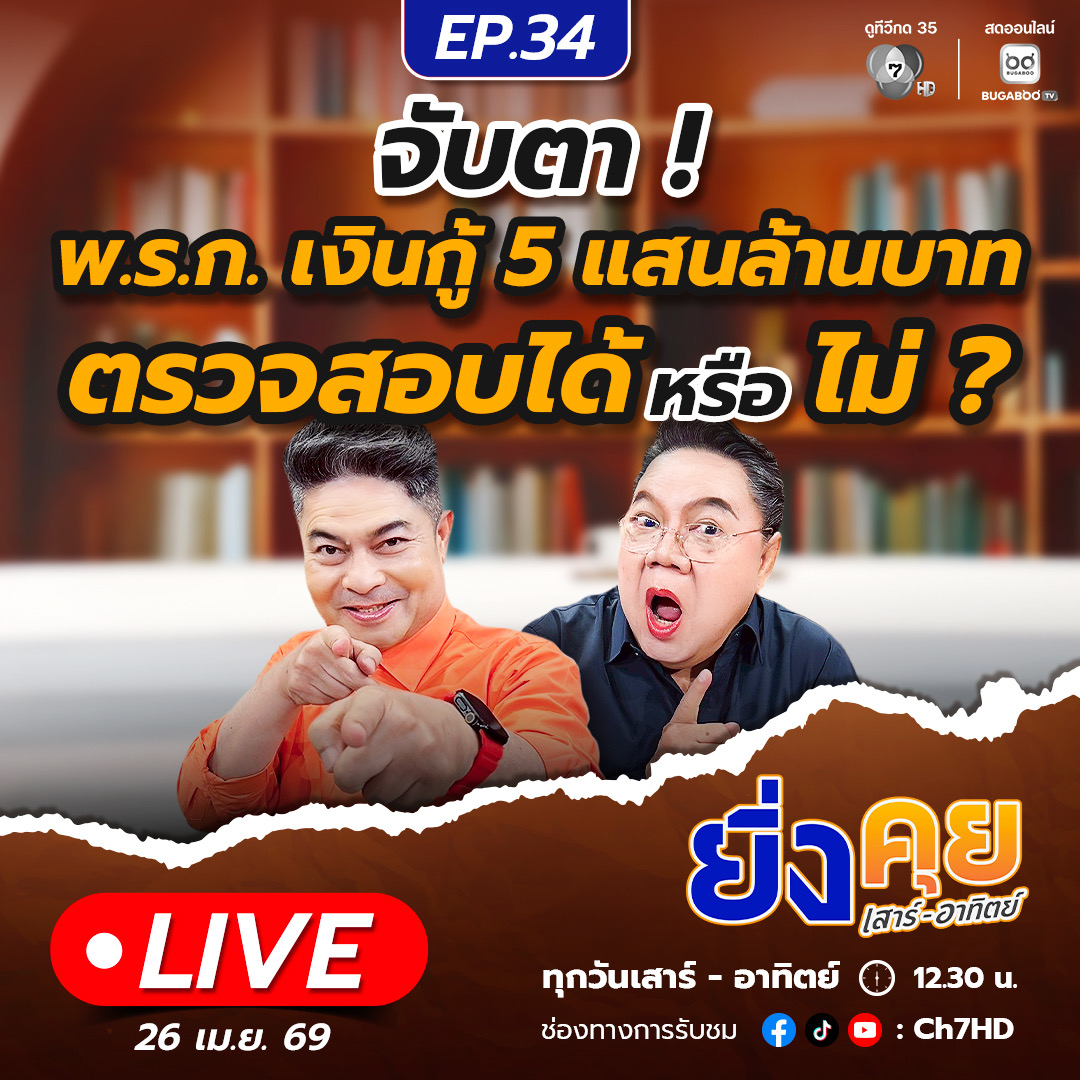 ยิ่งคุยเสาร์อาทิตย์ วันนี้กับประเด็นจับตา ! พ.ร.ก. เงินกู้ 5 แสนล้านบาท ตรวจสอบได้หรือไม่