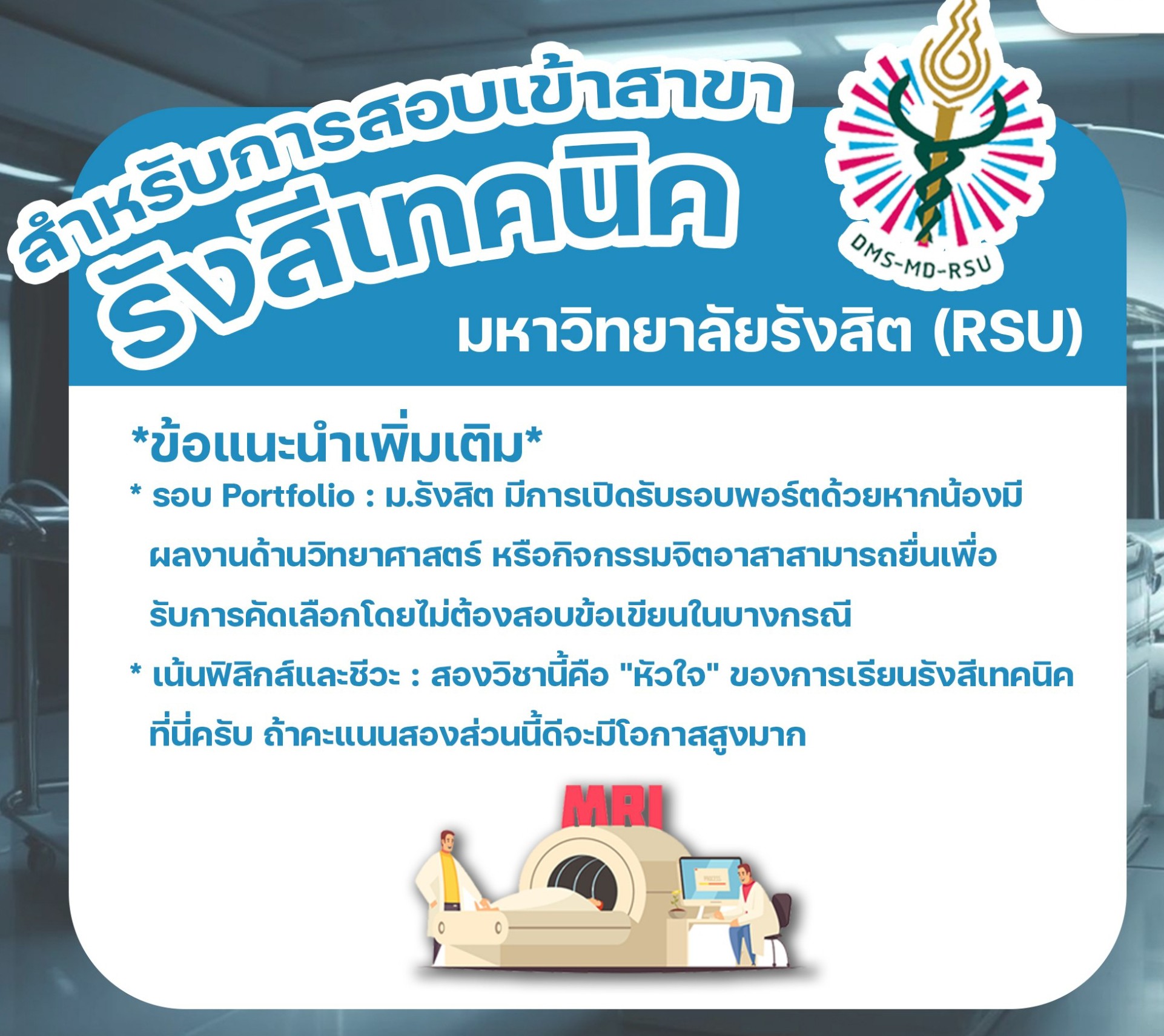 เตรียมตัวให้พร้อมก่อนใคร! กับการสอบเข้าสาขาที่ฮอตที่สุด "รังสีเทคนิค มหาวิทยาลัยรังสิต (RSU)" รอบสอบตรงคือโอกาสทองที่รับนักศึกษาจำนวนมากที่สุด! อย่าปล่อยให้โอกาสหลุดมือนะเด็กๆ