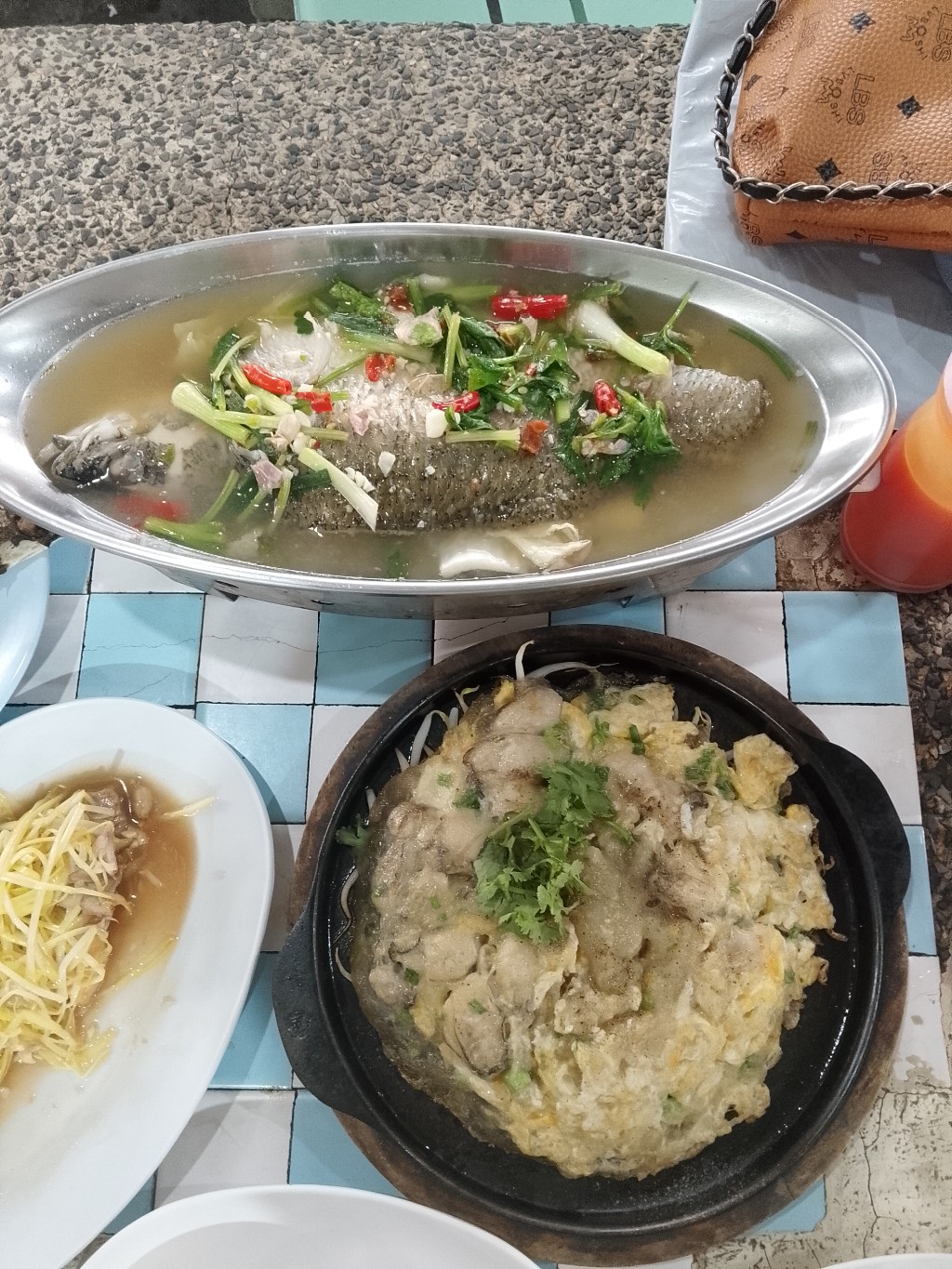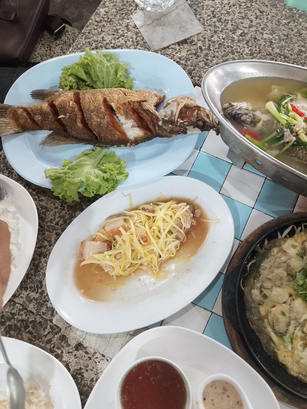 มี ปลาทอดยำมะม่วง ต้มส้มปลากะพงแบบทางใต้ ออส่วน ผัดกุ้ยช่ายขาวเต้าหู้หมูกรอบ 4 อย่าง ไม่รวมน้ำ 590 บาท ให้เยอะทุกอย่างค่ะ แต่ไม่ค่อยอร่อย จริงๆ ตั้งใจไปกินร้านประจำ แต่ร้านเค้าปิด เลยลองร้านนี้ ผิดหวังค่ะ ไม่ซ้ำแน่นอน ทุกคนได้อะไรทานกันค่ะ