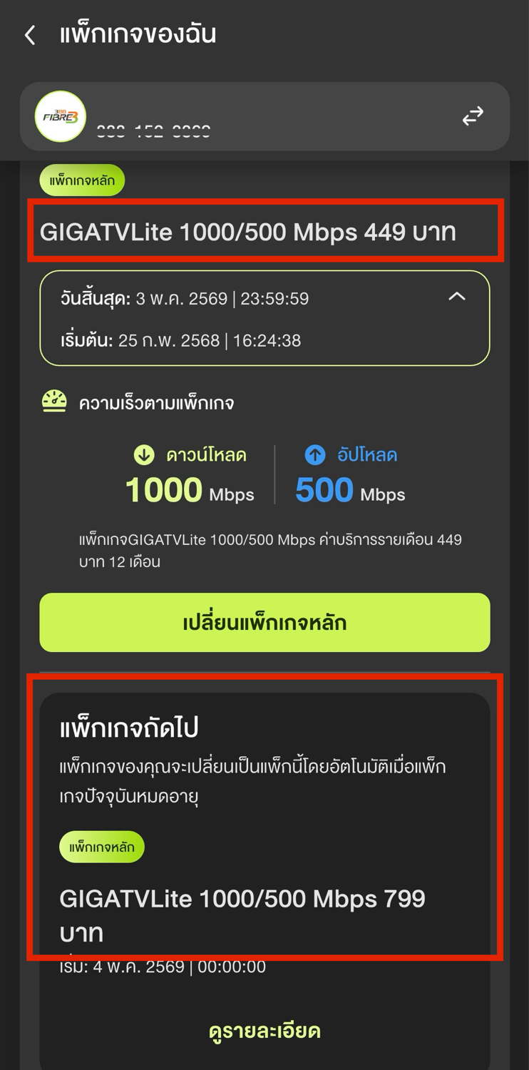 3BB FTTx 1000M/500M (GIGATVLite 24M) 479.4 บาท/เดือน (512.96 รวมVat) ปกติ 799 บาท/เดือน (854.93 รวมVat) นาน 12 รอบบิล Package มีสัญญา 24 เดือน เหลือชำระ 512.96 บาท 12 รอบบิล แต่สัญญา 24 เดือน ?