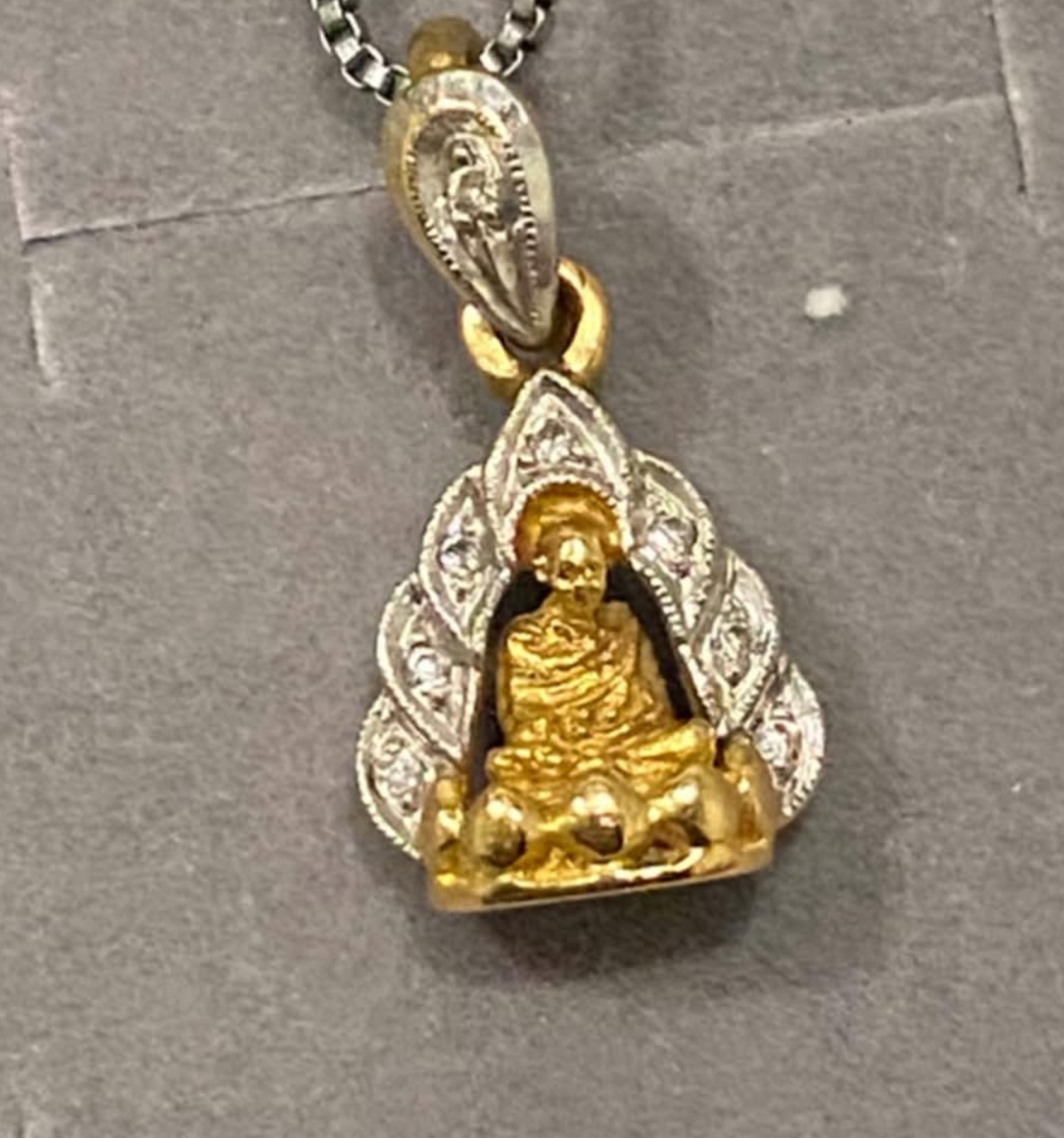 ขออนุญาตสอบถามนะคะ จี้ในรูปเรียกว่าอะไรค้นหาในอินเตอร์เน็ตไม่มีแบบในรูป มีแต่คล้ายๆกัน แต่น่าจะคนละหลวงปู่ มันสำคัญมากๆอยากได้มาทดแทน ไม่รู้จะหาจากไหน🥹