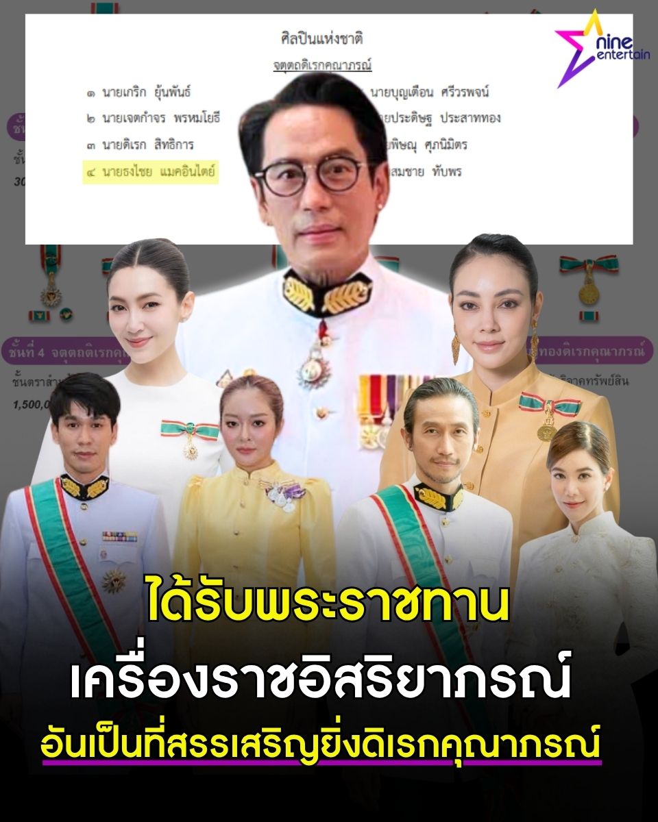 ทั้งนี้ยังมีอีกหลายคนในวงการบันเทิงที่เคยได้รับเครื่องเครื่องราชอิสริยาภรณ์นี้ อาทิ เบลล่า ราณี , ตูน บอดี้สแลม , ตั๊ก บงกช และพีท กันตพร สามีแก้มบุ๋ม ปรียาดา.-ไนน์เอ็นเตอร์เทน