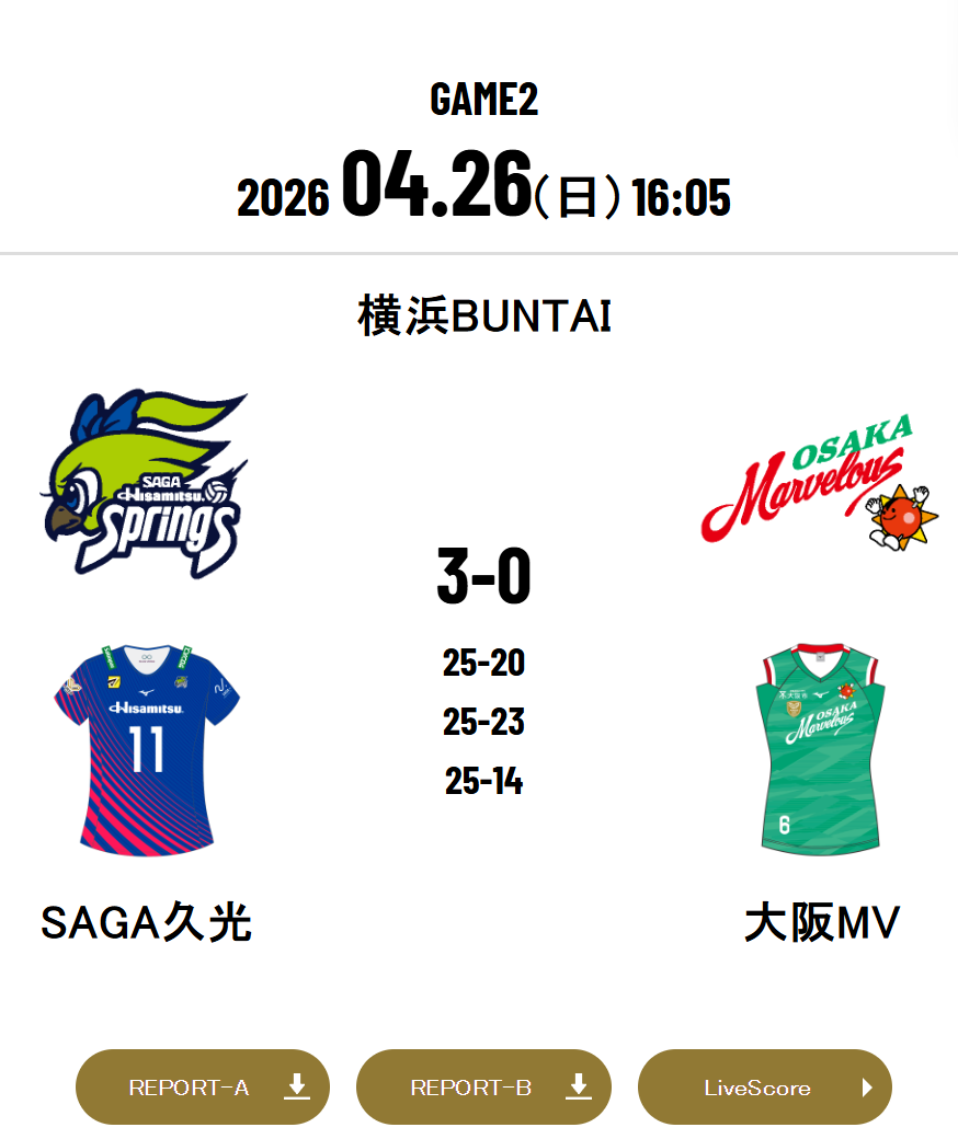 SAGA Hisamitsu Springs 3 - 0 Osaka Marvelous (SAGA ชนะซีรีส์ 2-0)