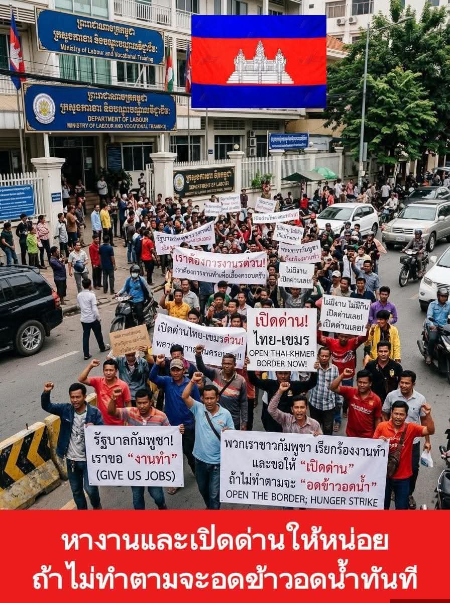 ล่าสุด ชาวกัมพูชา ประท้วงหน้ากระทรวงแรงงานเพื่อให้เปิดด่าน กลับไปไทยได้ ??
