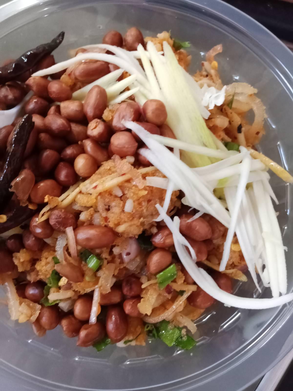 เราสั่งไม่ใส่พริกเลย ที่ร้านเลยวางพริกทอดข้าง ๆ มาให้ บอกว่าเผื่อไว้ดีกว่า