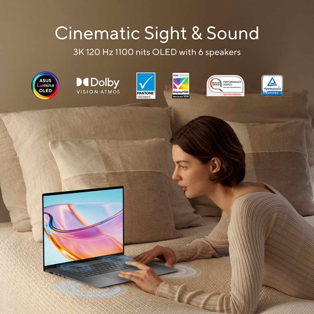 ASUS Zenbook S16 Ryzen AI เป็นโน้ตบุ๊กพรีเมียม 16 นิ้วที่เหมาะกับคนทำงานยุคใหม่ จุดเด่นคือจอทัชสกรีน 3K OLED 120Hz สีตรง DCI-P3 100% ให้ภาพคม สีสวย และพื้นที่ทำงานกว้างขึ้น เหมาะทั้งงานเอกสาร ประชุมออนไลน์ แต่งภาพ ทำคอนเทนต์ และใช้งานหลายโปรแกรมพร้อมกัน 💻