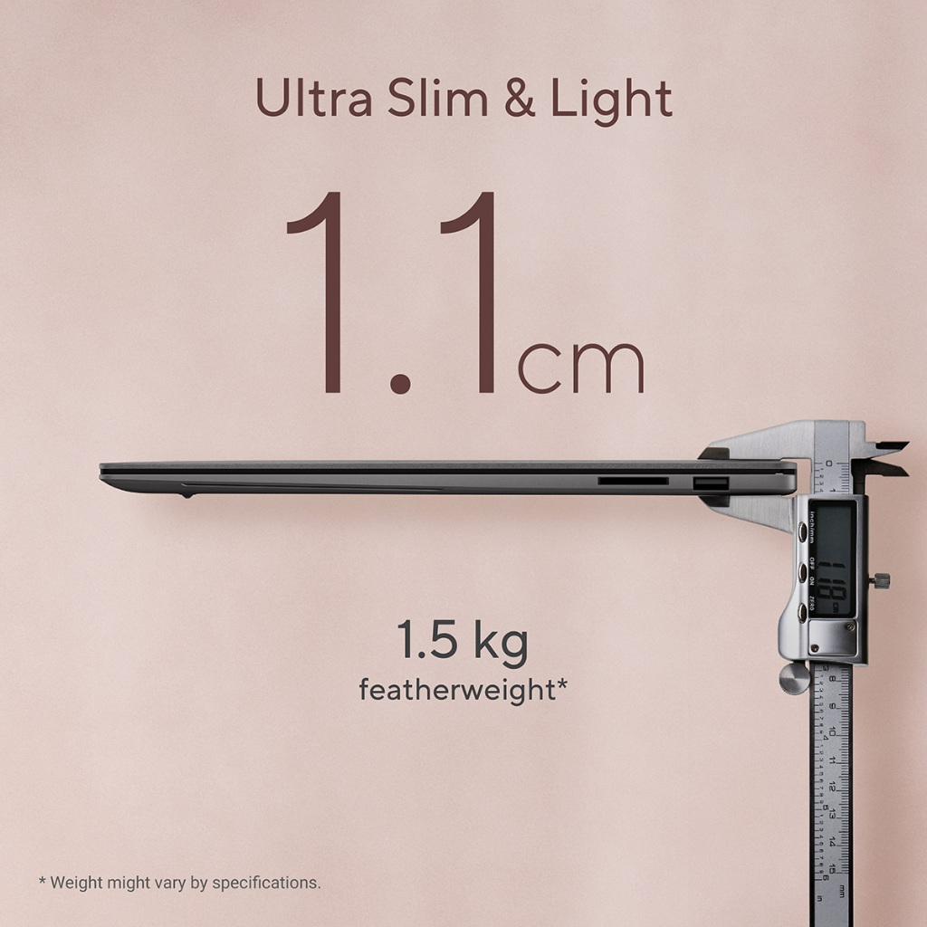 สเปกหลักใช้ชิป AMD Ryzen AI 9 465 พร้อม NPU สูงสุด 50 TOPS, RAM 32GB LPDDR5X และ SSD 1TB PCIe 4.0 ช่วยให้การเปิดไฟล์ใหญ่ สลับโปรแกรม หรือทำงานครีเอทีฟลื่นขึ้น ตัวเครื่องบางประมาณ 1.19–1.29 ซม. น้ำหนัก 1.5 กก. พกไปทำงานนอกสถานที่ได้สะดวก 🔋