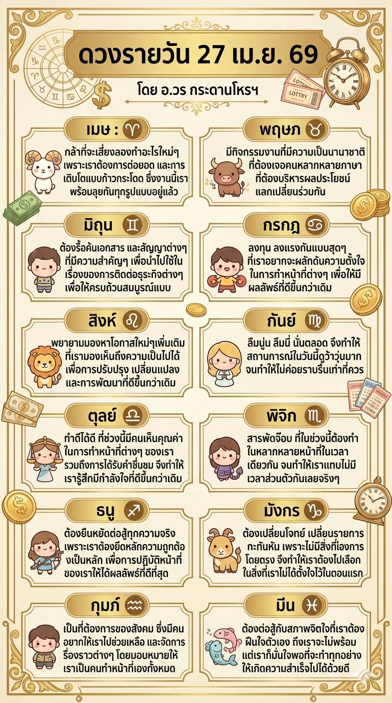Ψ ☀ ดวงวันนี้  27 เมษายน พ.ศ. 2569  โดย อ.วร กระดานโหรฯ ☀ 卐