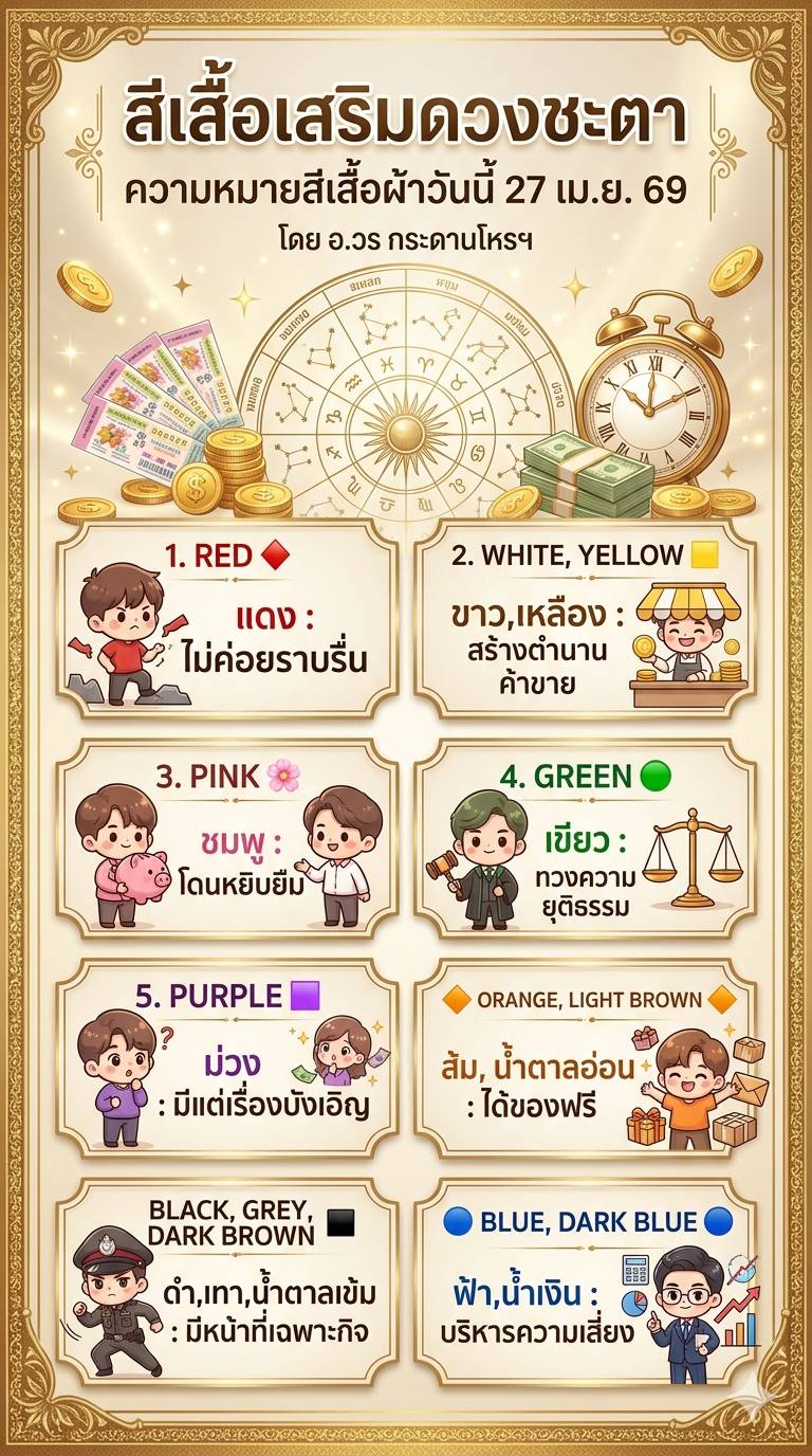 ความหมายสีเสื้อผ้าวันนี้  27 เม.ย.​ 69