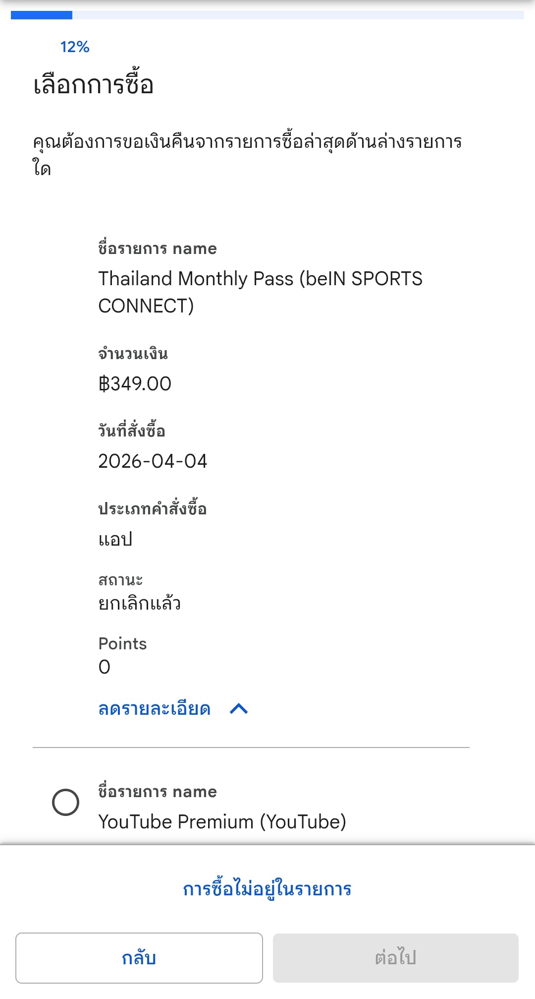 ขอเงินคืนผ่าน Google ไม่ได้ หลังจากถูกตัดค่าสมัครสมาชิก Bein sports ผ่านบัตรเดบิตกรุงไทย ก่อนวันที่แจ้งในแอพ