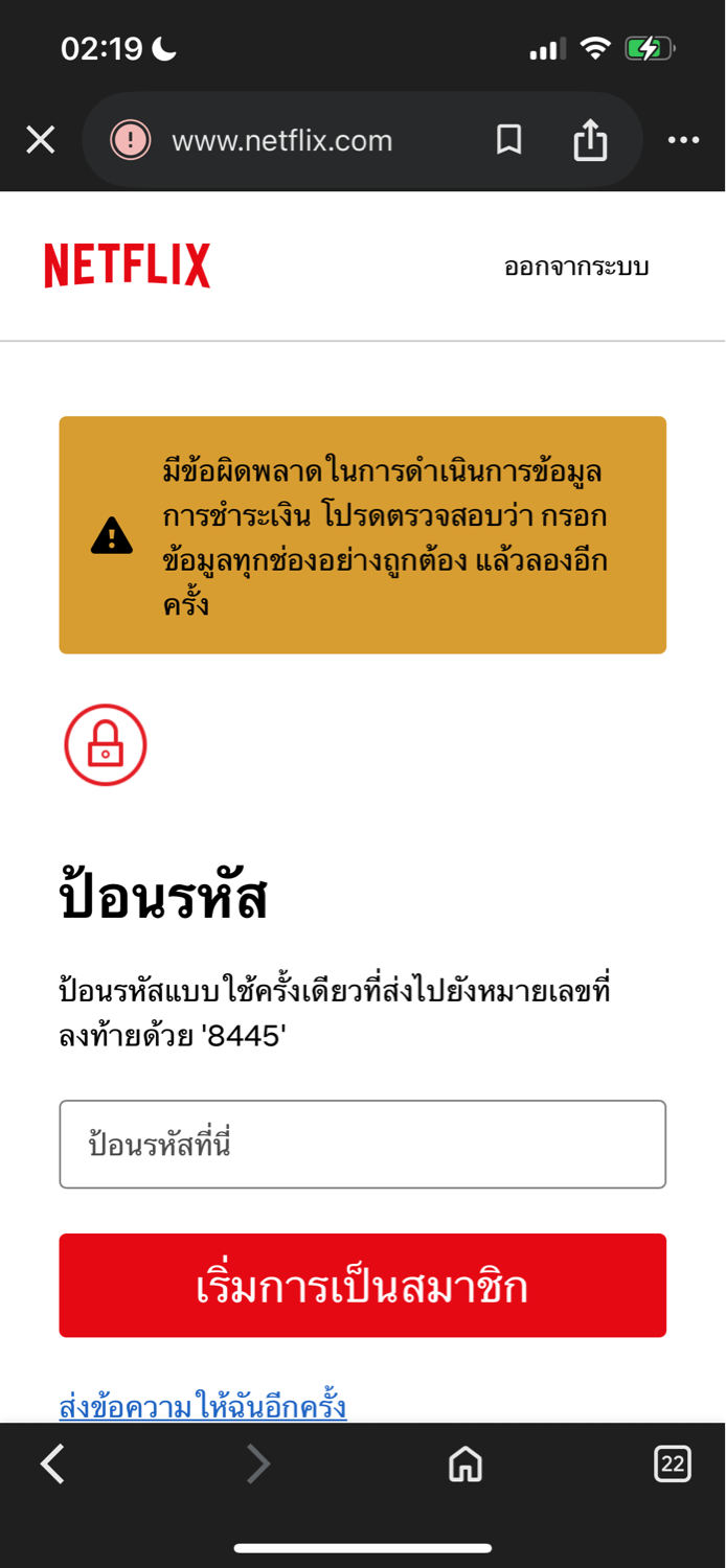 จ่ายเงินNetflix ไม่ได้