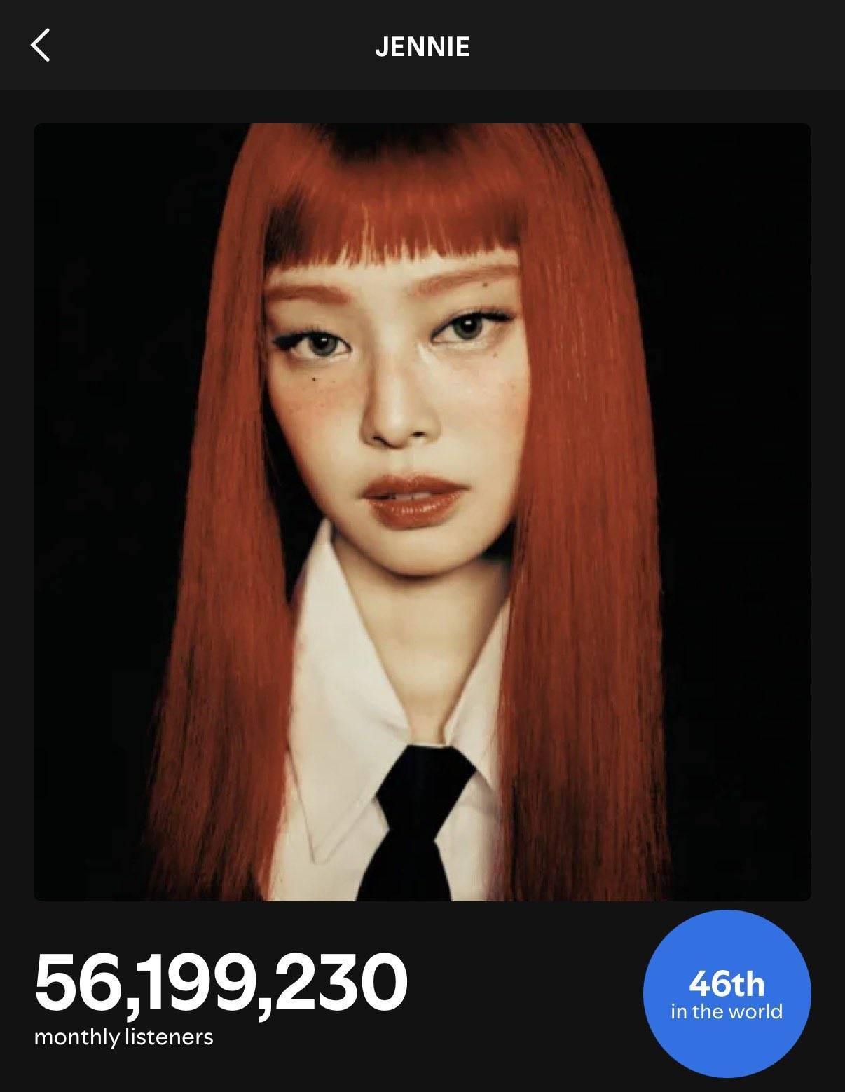 JENNIE’s monthly listeners on Spotify: