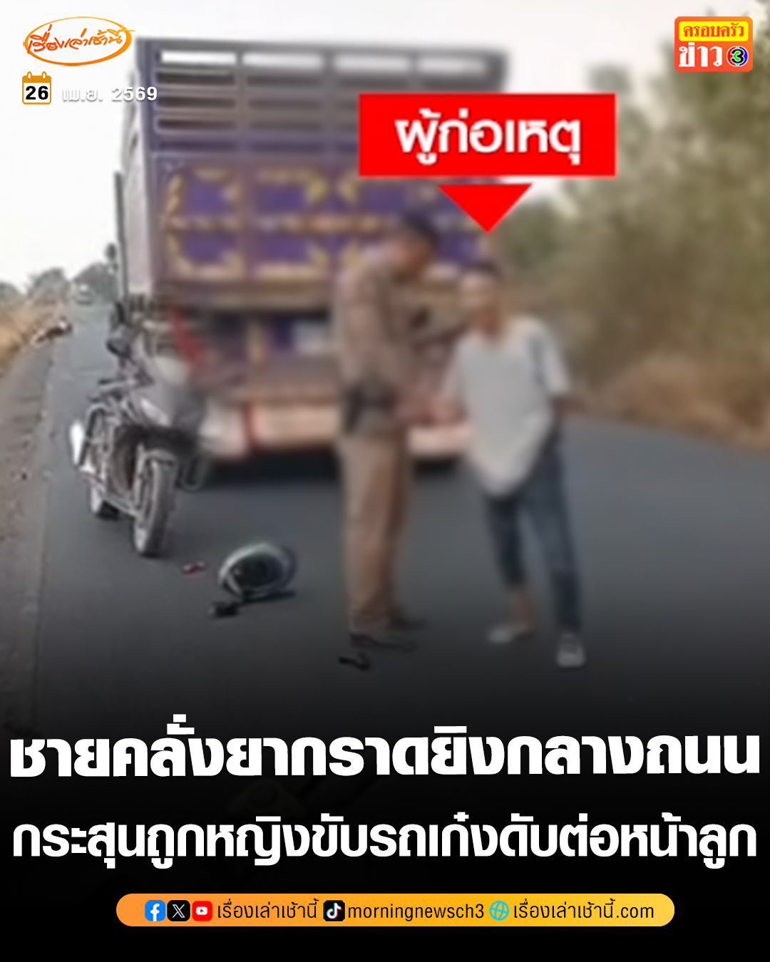 ชายคลั่งยาขี่บิ๊กไบก์เสียหลักคว่ำ ชักปืนกราดยิงมั่วกว่า 10 นัด ใส่รถ-บ้านริมทาง บริเวณถนนเลียบคลองพระยาบันลือ อ.ลาดบัวหลวง จ.พระนครศรีอยุธยา กระสุนเจาะหน้าอกหญิงขับรถเก๋งเสียชีวิตต่อหน้าลูก 2 คน ก่อนตำรวจรวบตัวผู้ก่อเหตุพร้อมยาบ้า 3 เม็ด