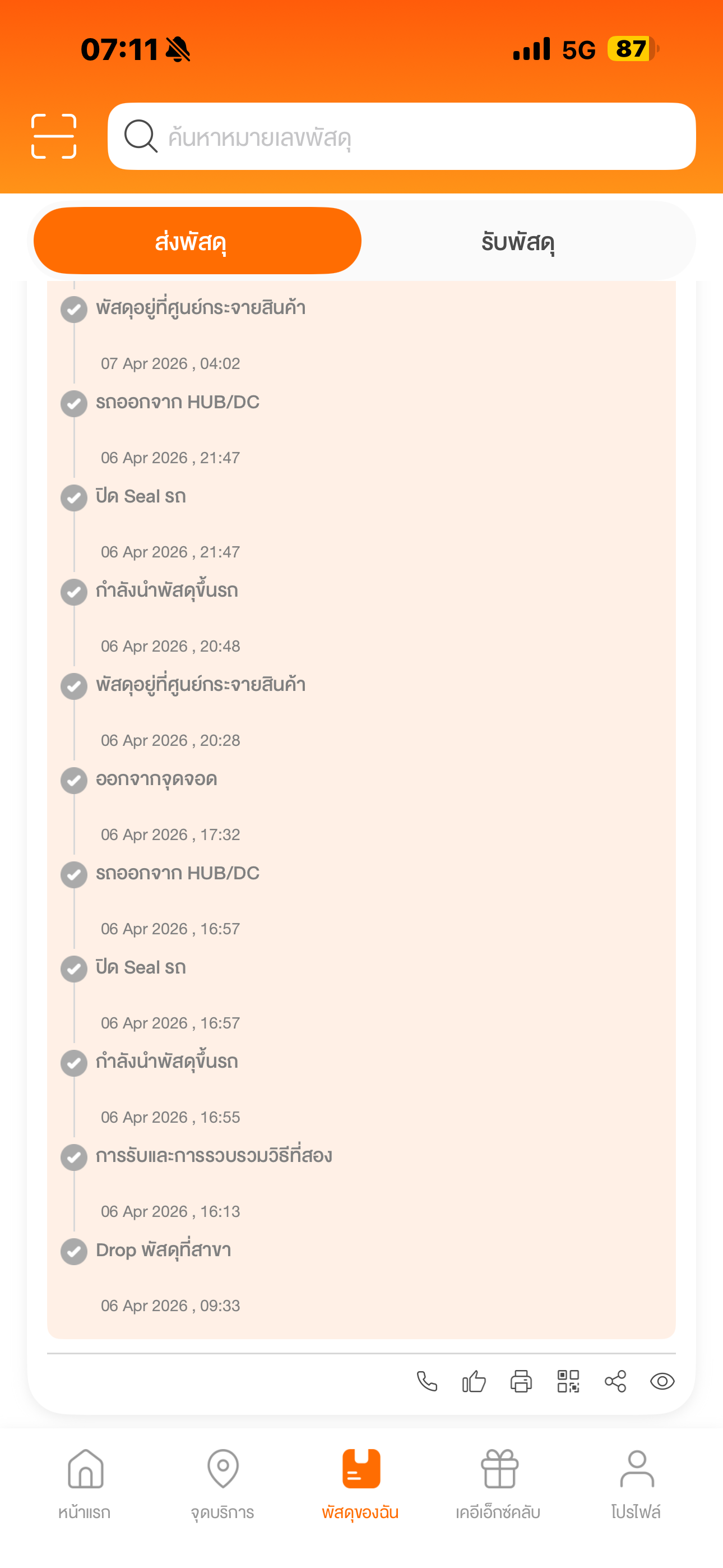 เริ่มตามวันแรก ประมาณวันที่ 7-9เพราะพัสดุไปอยู่ที่คลังบางบ่อ ซึ้งปลายทางจริงๆอยู่บางเสาธง ขึ้นส่งกำลังส่ง โทรหาคอลเซ็นเตอร์ ก็ได้ความแต่ว่าพัสดุถูกว่าไปผิดคลัง จะเเจ้งทางคลังให้