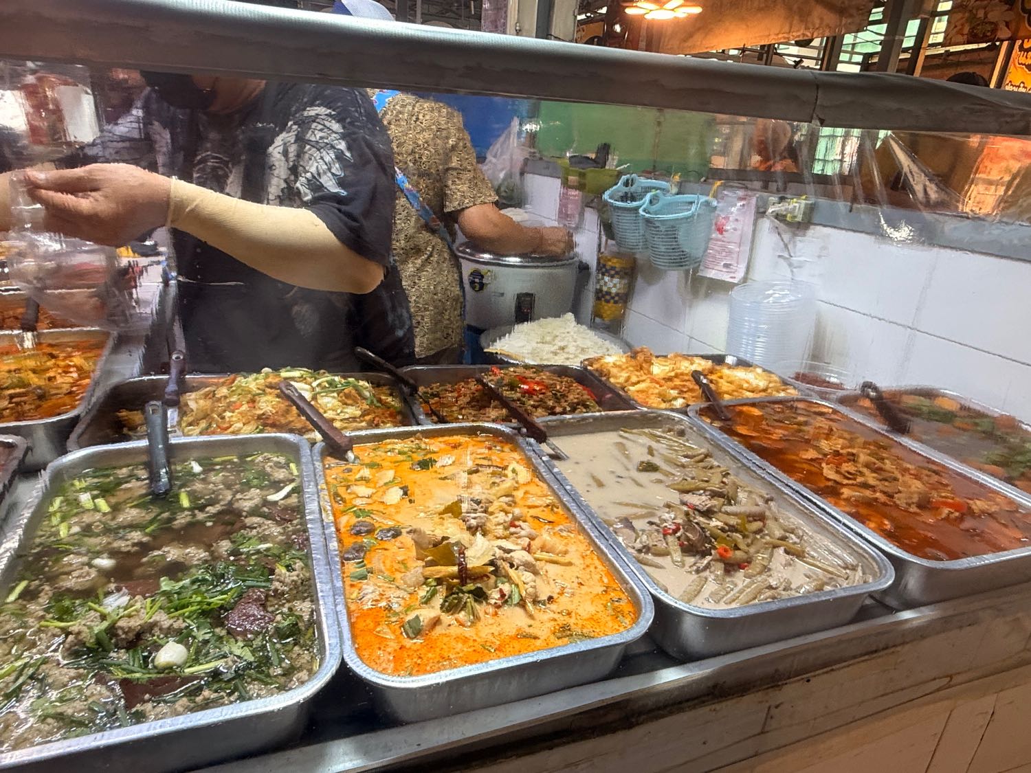 หาข้าวทาน เป็นตลาดเล็กๆ ไม่มีแอร์ มีพัดลมบริการ บริเวณจุดนั่งทางอาหาร