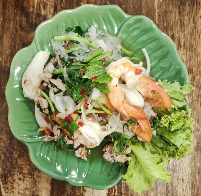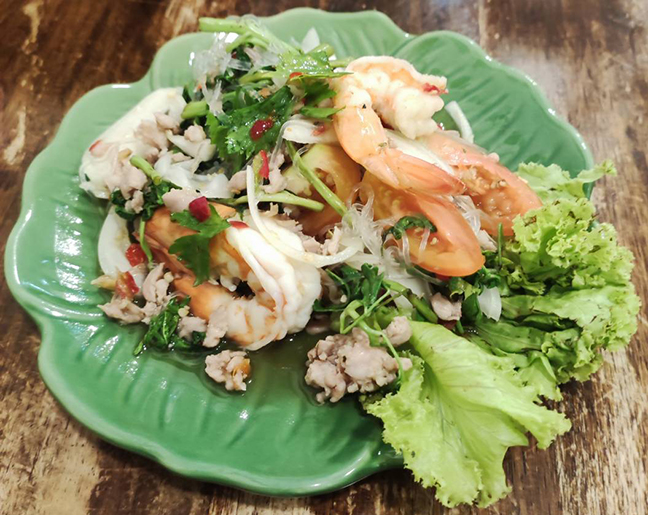 ยำวุ้นเส้นกุ้งสดหมูสับ รสอ่อนเผ็ดอ่อนเปรี้ยวไปนิดนึง กุ้งสดตัวใหญ่ โดยรวมอร่อย