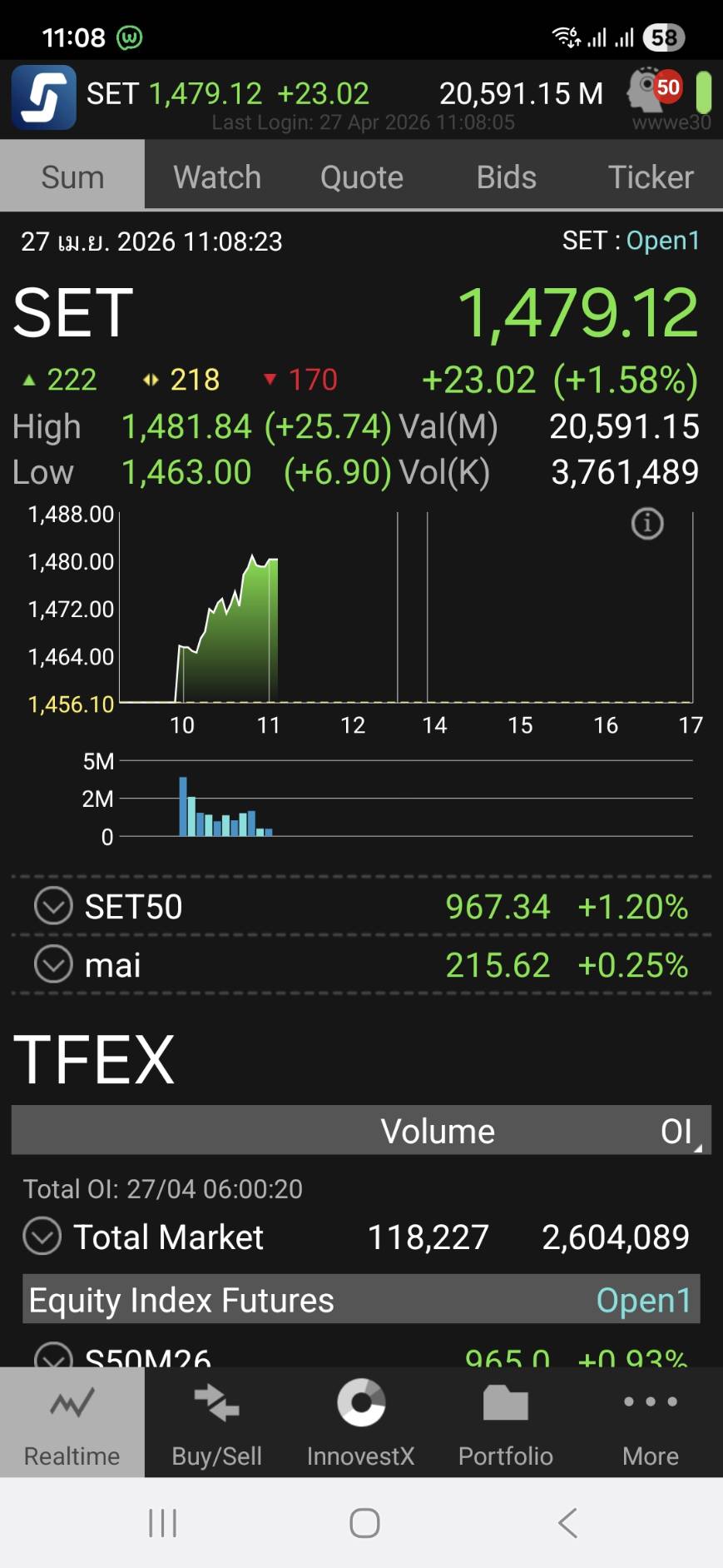 วันนี้ SET Index +23 จุด 1500 จุดแค่ปากซอย