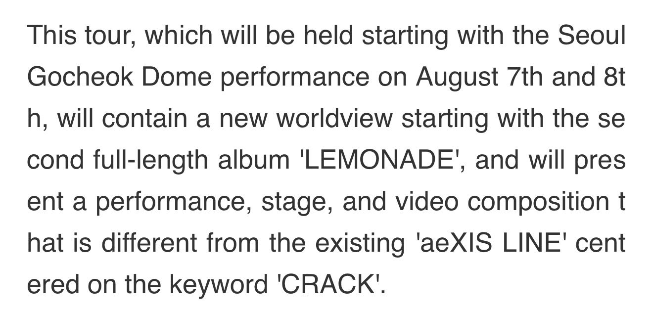 โดยทัวร์ในครั้งนี้จะเริ่มต้นขึ้นที่ Gocheok Sky Dome ในกรุงโซล วันที่ 7-8 สิงหาคมนี้ ซึ่งจะเป็นจุดเริ่มต้นของโลกทัศน์ใหม่ที่เชื่อมโยงกับอัลบั้มเต็มชุดที่ 2 'Armageddon' และมีแผนที่จะนำเสนอการแสดง เวที รวมถึงองค์ประกอบวิดีโอที่แตกต่างจาก 'SYNK : HYPER LINE' เดิม โดยเน้นไปที่คีย์เวิร์ดอย่าง 'Parallel Line'"
