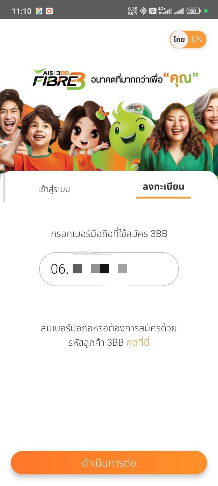 แต่ปัจจุบันได้เปิดใช้บริการอินเทอร์เน็ต 3BB เพิ่มอีกหนึ่งหมายเลข ได้ทำการติดตั้งแอพ 3BB MEMBER เพิ่มและสมัครเพื่อลงทะเบียน
