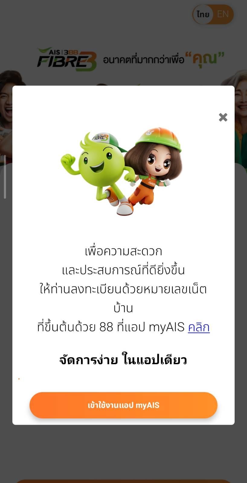 (ภาพที่2-3) พอถึงขั้นตอนลงทะเบียน ระบบบังคับให้ไปโหลดติดตั้งแอพ my ais เพิ่มเพื่อเข้าใช้งาน ซึ่งไม่ต้องการใช้งานแอพดังกล่าว อยากสอบถามไปยังเจ้าหน้าที่ว่า ต้องทำอย่างไรในการลงทะเบียน 3BB MEMBER อย่างเดียว