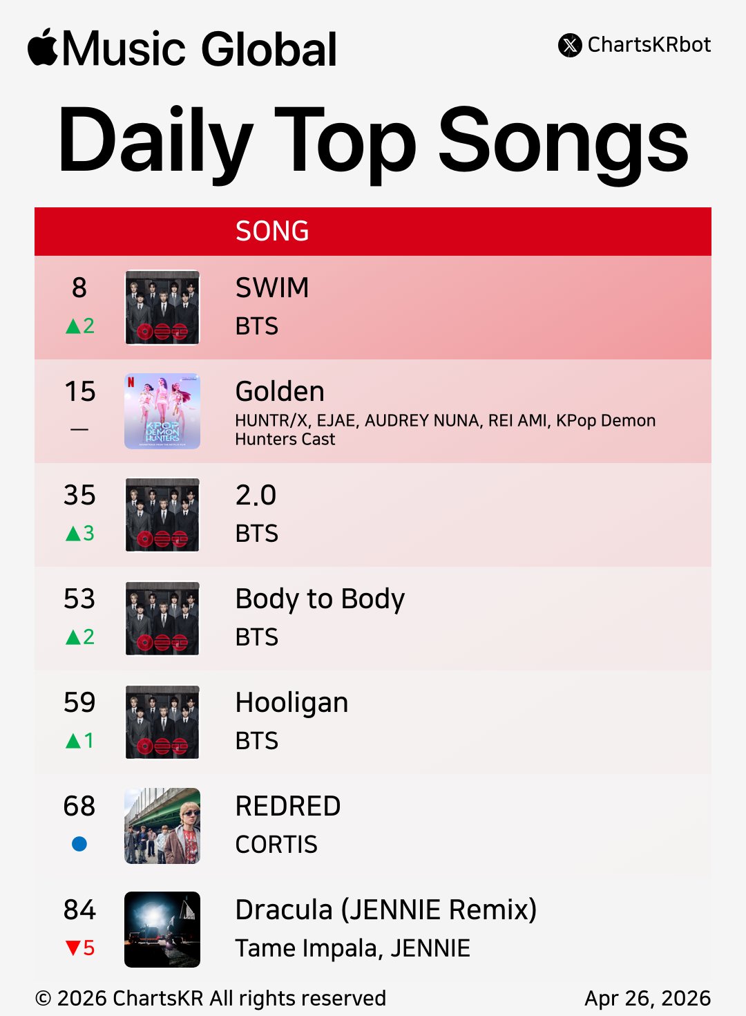 CORTIS 'REDRED' เดบิวต์อันดับที่ #68 บนชาร์ต Apple Music Global 🎉
