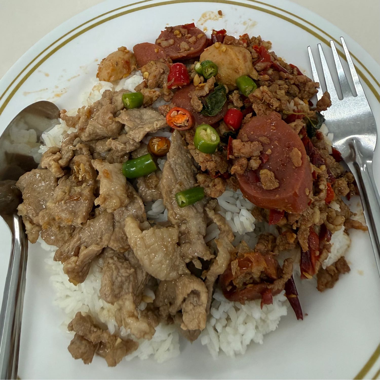 ผัดกุ้ยช่ายขาวหมูกรอบ จริงๆแล้วน่าจะกินกับข้าวต้ม แต่ข้าวสวยก็อร่อยเหมือนกันค่ะ