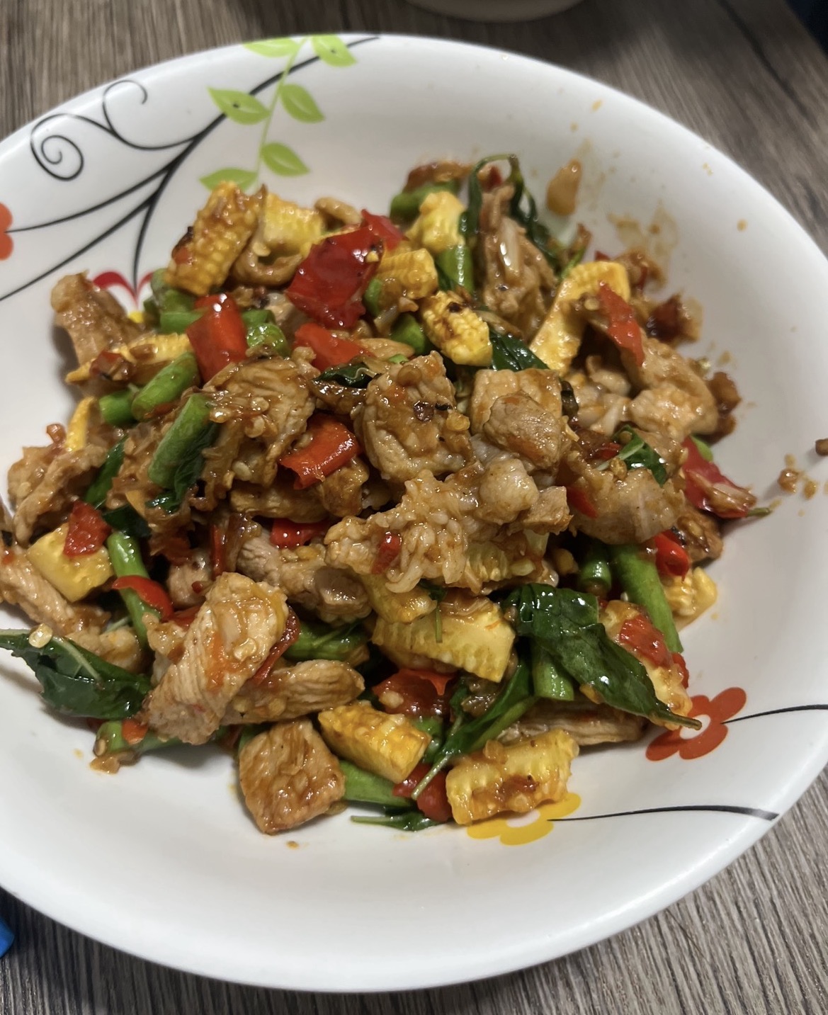 เนื่องจากเรานั้นเป็นสายวิทย์ ทุกอย่างสามารถผสมกันได้ เมนูวันนี้เลยได้เมนูนี้มา ไก่ผัดพริกแกงที่ประกอบไปด้วย หอมหัวใหญ่ กะหล่ำ แครอท พริกหั่น และใบมะกรูด ผัดๆปรุ